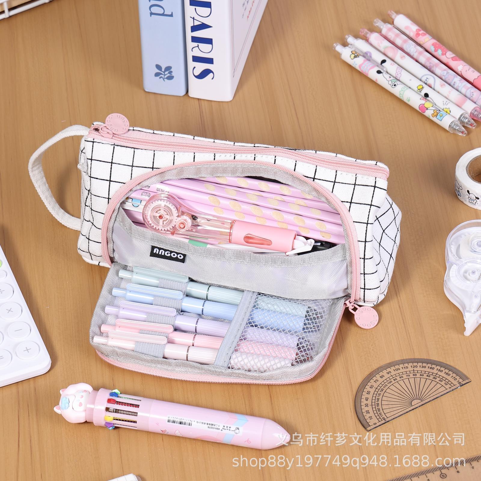 韓国風シンプル無地大容量ペンケース 中学生・高校生向け 小清新キャンバスペンケース 多機能三角文具袋