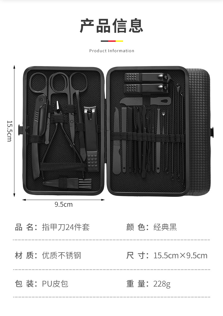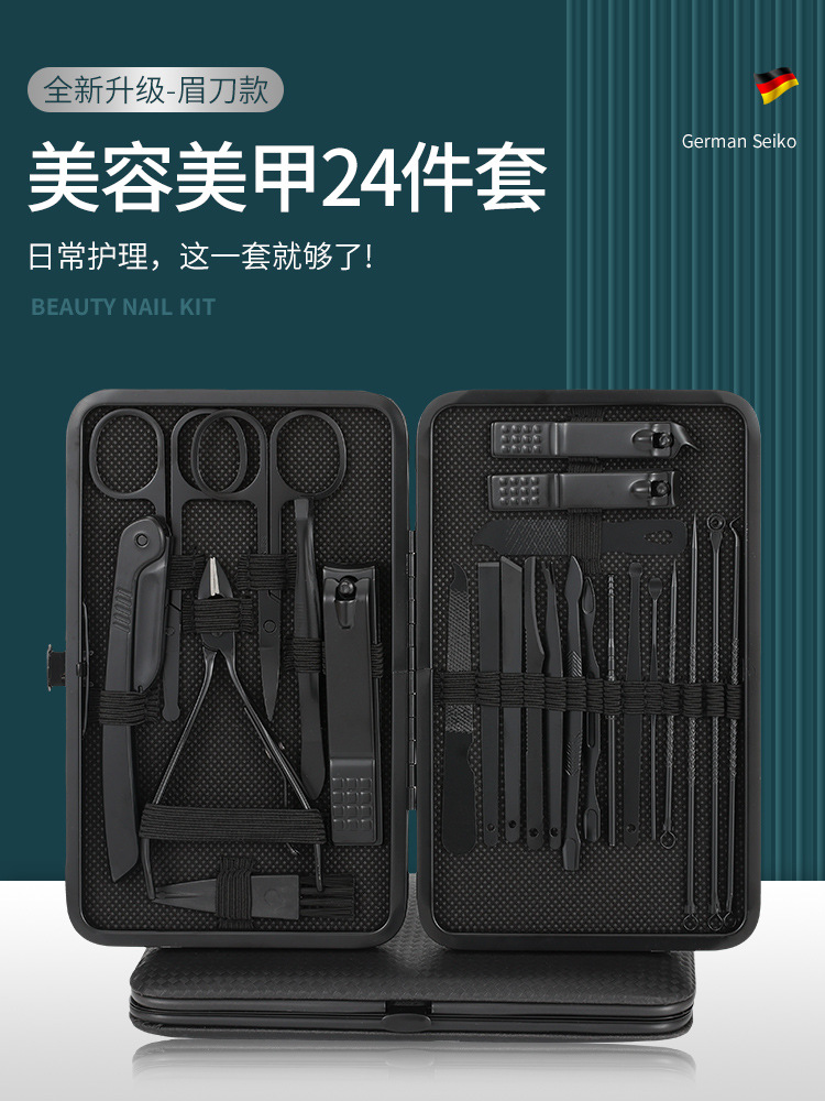 クロスボーダー爪切りマニキュアコンプリートセット黒と赤 24 ピース斜め爪切り 1 ピースマニキュアセット角質はさみ