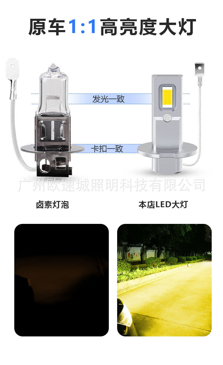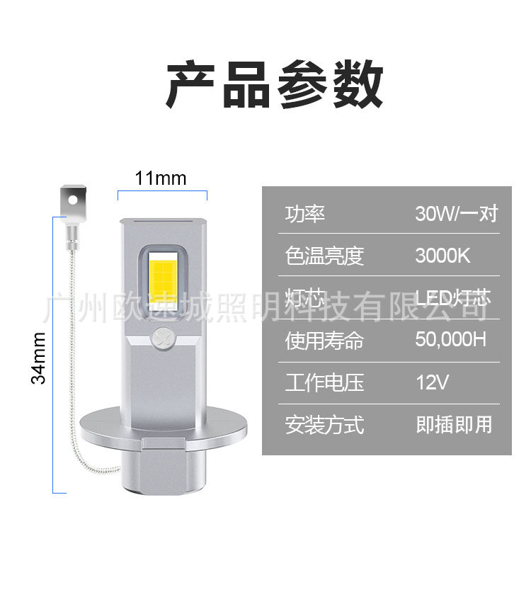 工場卸売り自動車LEDヘッドライトフォグランプh 3ミニ電球非破壊取付直挿ヘッドライト黄色3000K