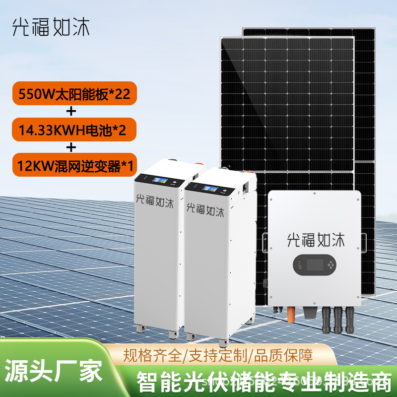 12KW28.66度バッテリーソーラー発電システムホームヴィラフルセット太陽光発電ハイブリッドシステム