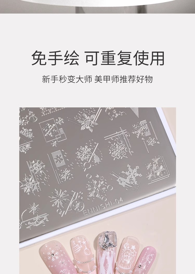 美甲秋冬格纹法式线条转印Hellokitty猫钢板印章彩绘图案转印工具