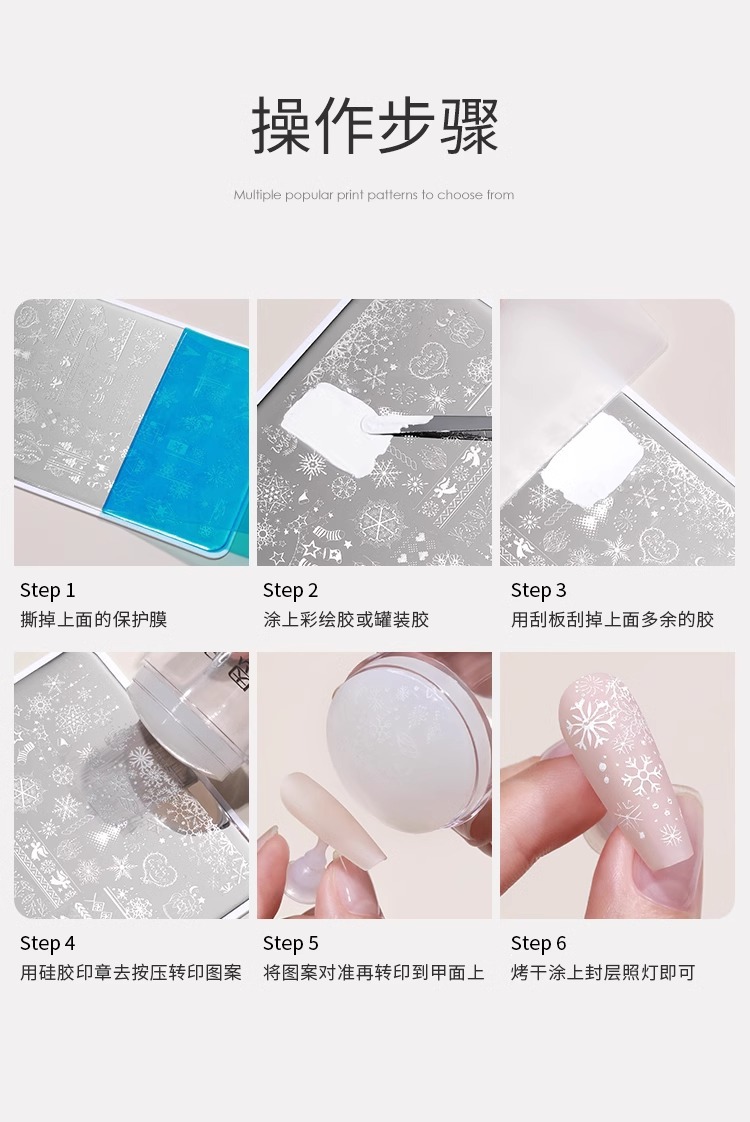 ネイルアート捺染鋼板セット透明シリコン印鑑蝶クリスマス模様マニキュア転写テンプレートツール