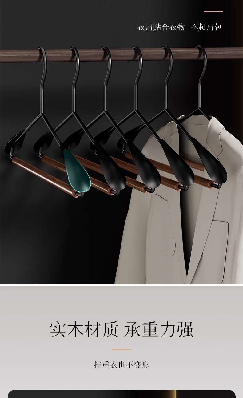 轻奢高端实木宽肩铁艺衣架家用衣柜衣帽间民宿酒店木质挂衣服撑子