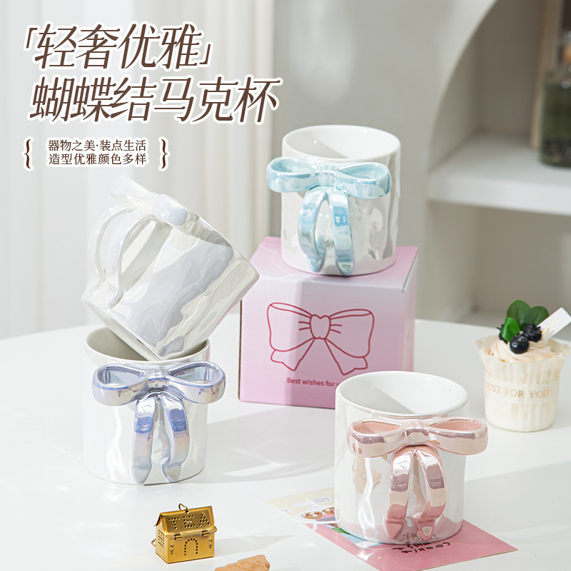 軽くて高級なリボンマグカップ、女の子向けのクロスボーダーセラミックカップ、見栄えの良い寮の家庭用ウォーターカップ、見栄えの良いお土産
