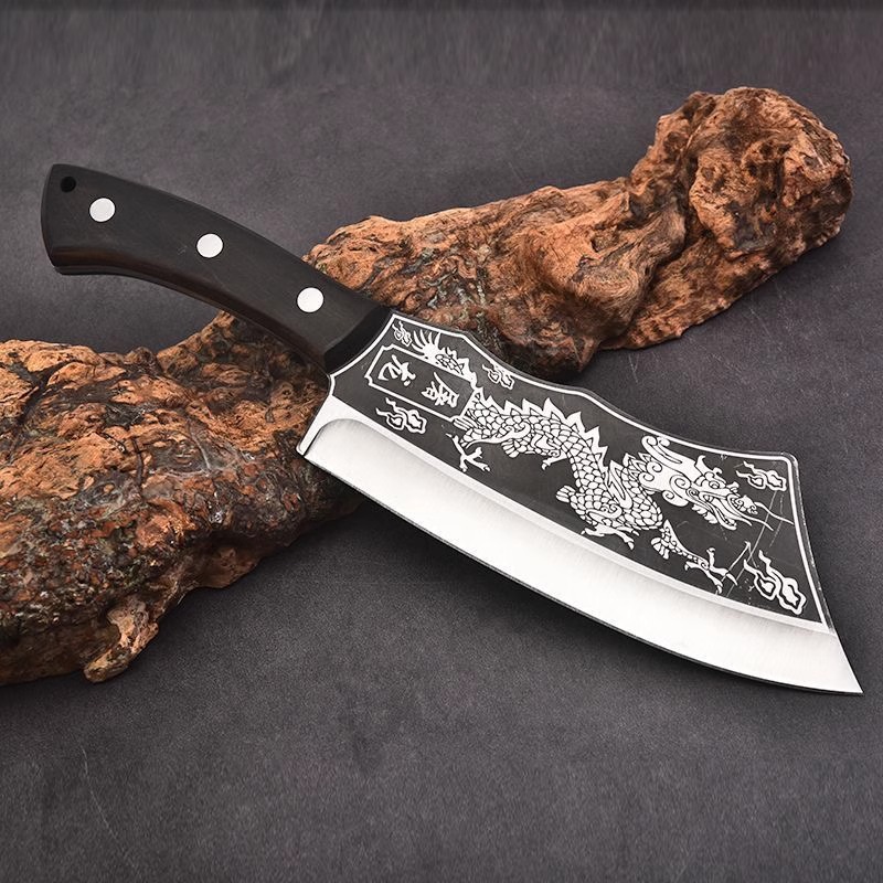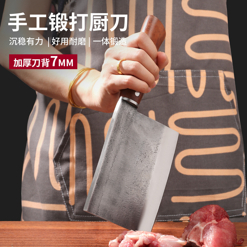 鍛造薪割りナイフ、アウトドアキャンプ、山道開拓、農業用伐採ナイフ、厚みのある骨切りナイフ、豚棒骨ナイフ