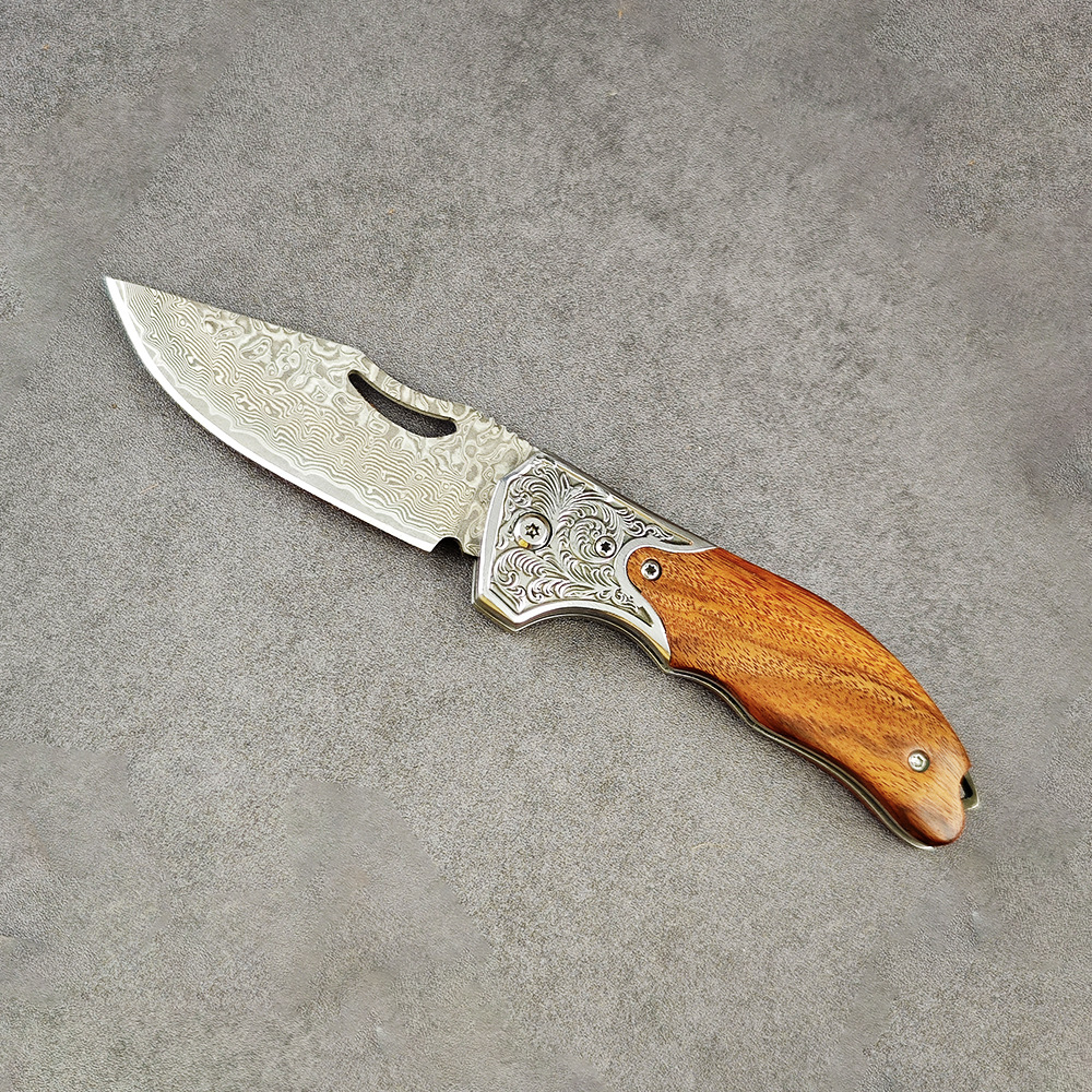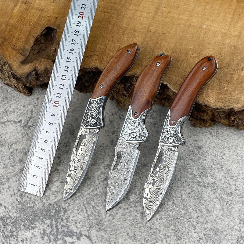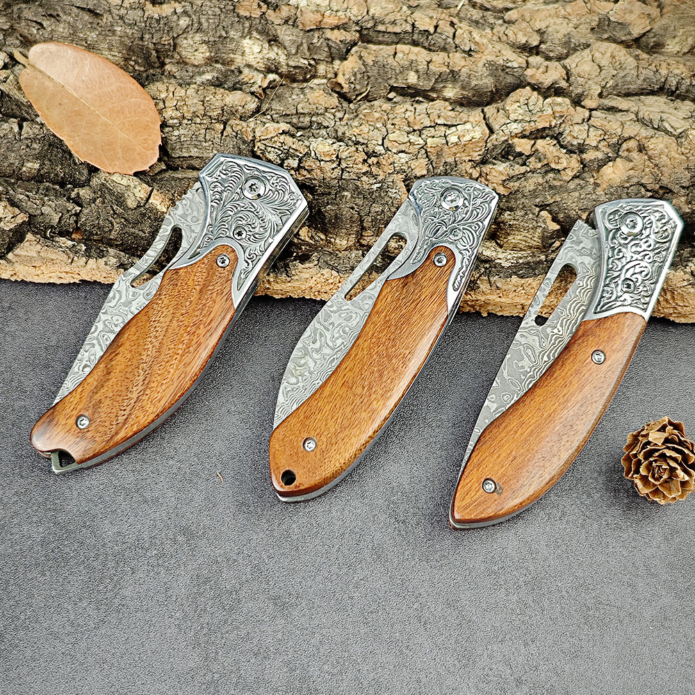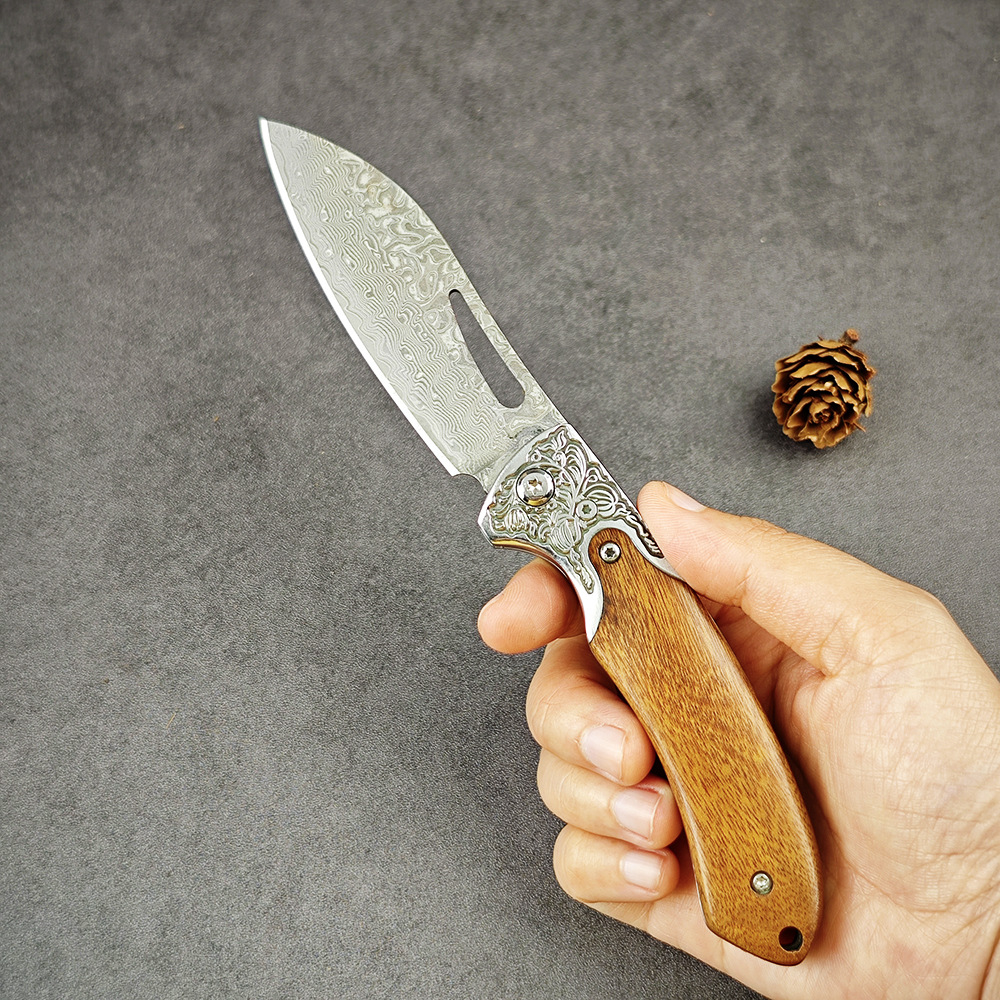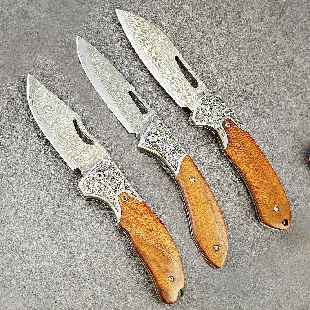 ダマスカス鋼折り畳みナイフはナイフを多く使っています。
