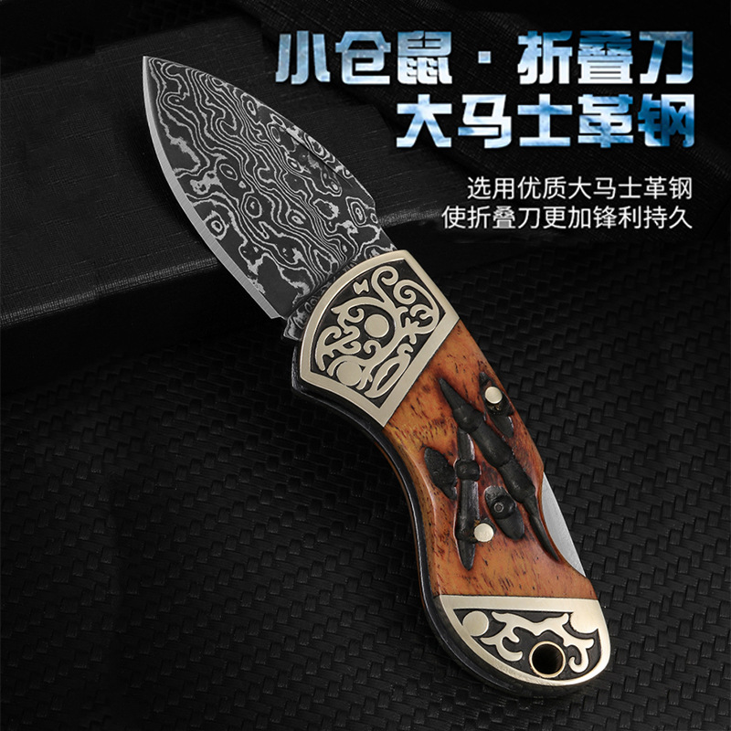 水果刀手把吃肉刀牛羊肉削锋利果皮刀大马士革钢折叠小刀多用小刀