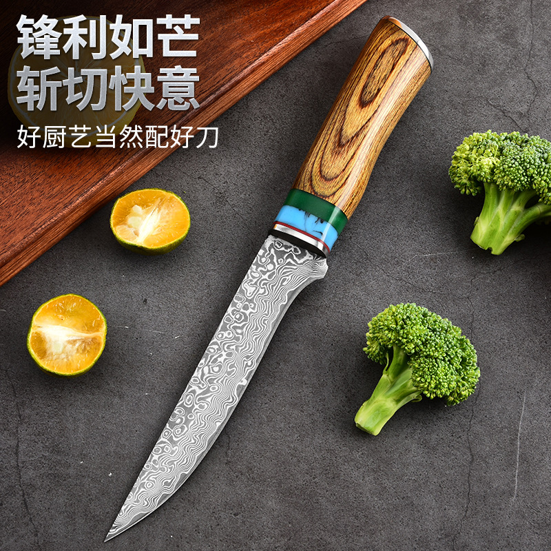 キッチン用多機能ナイフダマスカススチール木柄シェフ分割肉ナイフキッチン家庭用専用フルーツナイフ