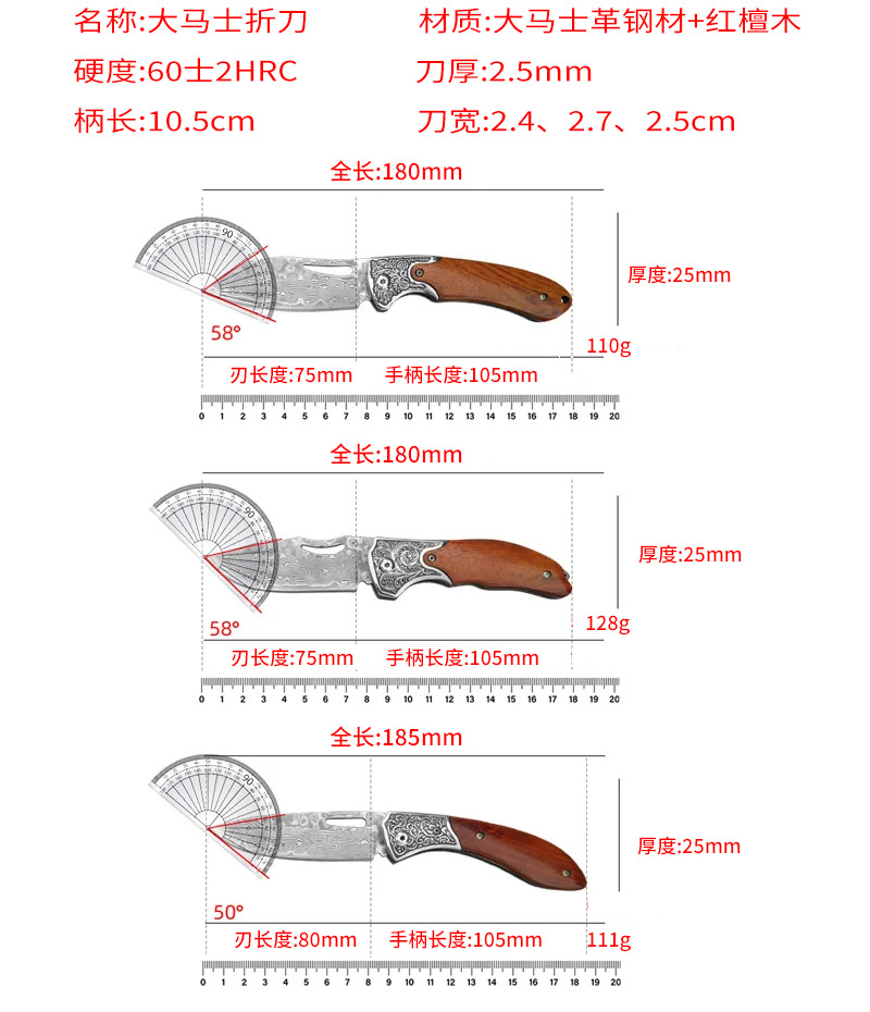 仕様 No.1 ダマスカス フォールディングナイフ,ダマスカスフォールディングナイフ No.2,No.3 ダマスカスフォールディングナイフ