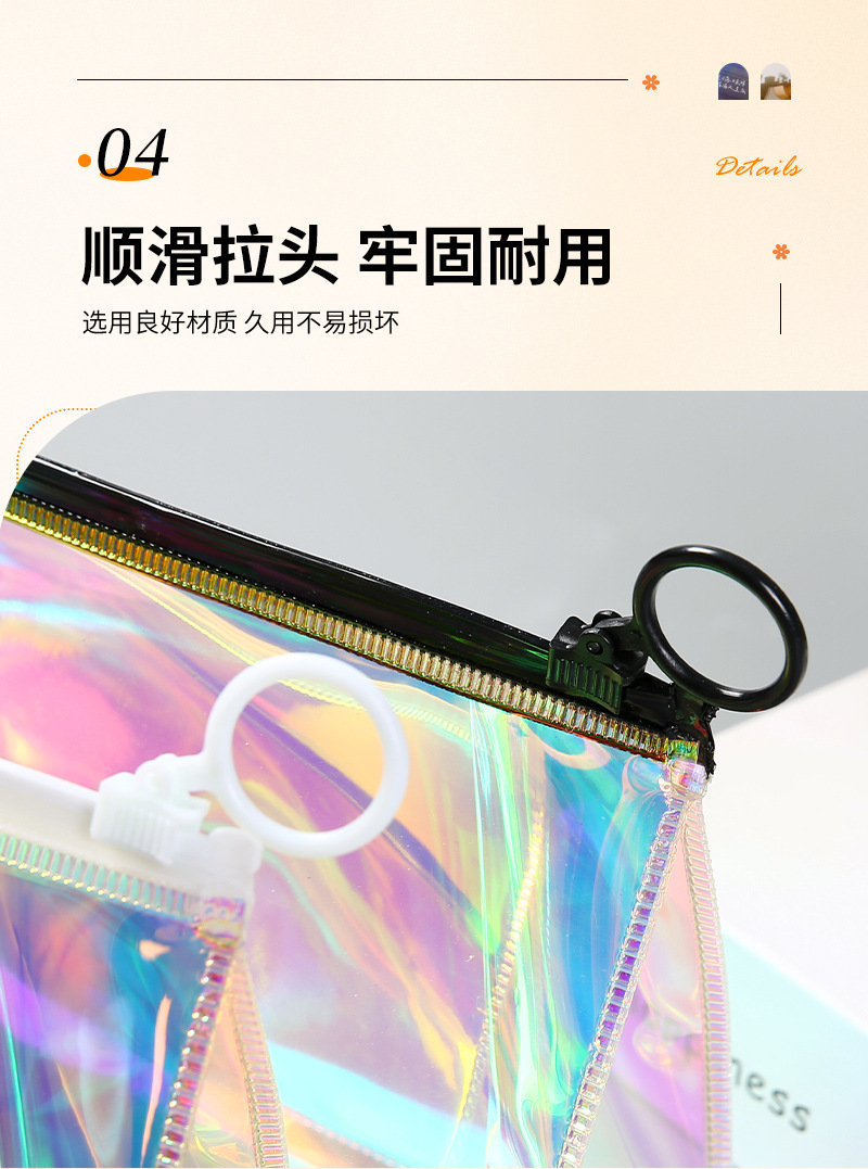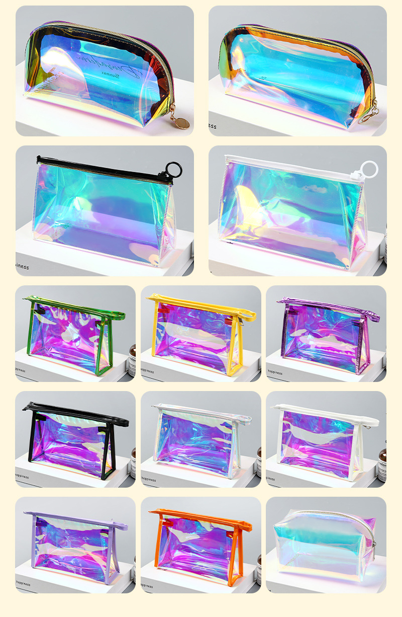 源工場pvc幻彩化粧バッグ手提げtpuレーザー化粧バッグ貝殻レーザーファスナー化粧バッグ