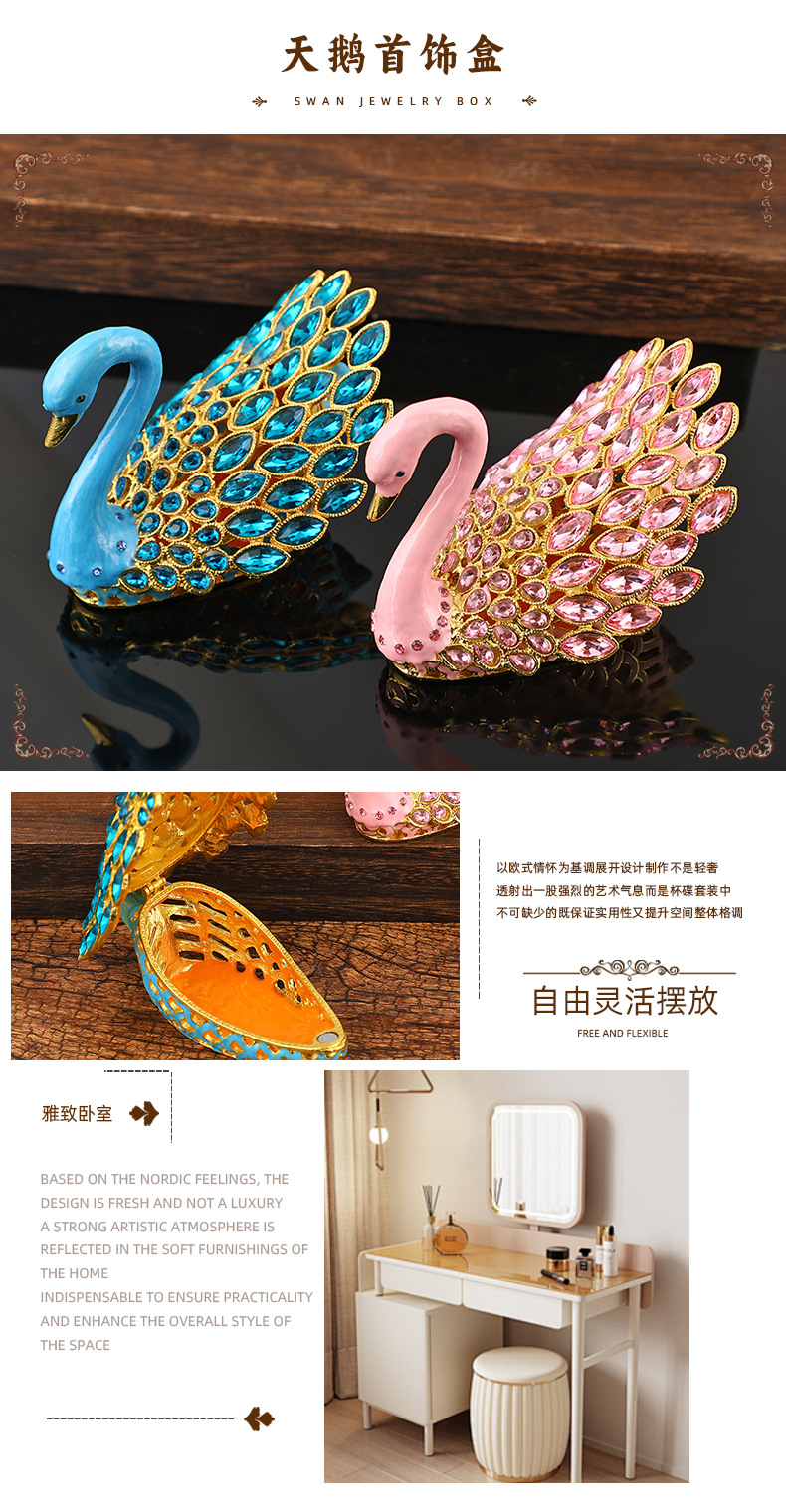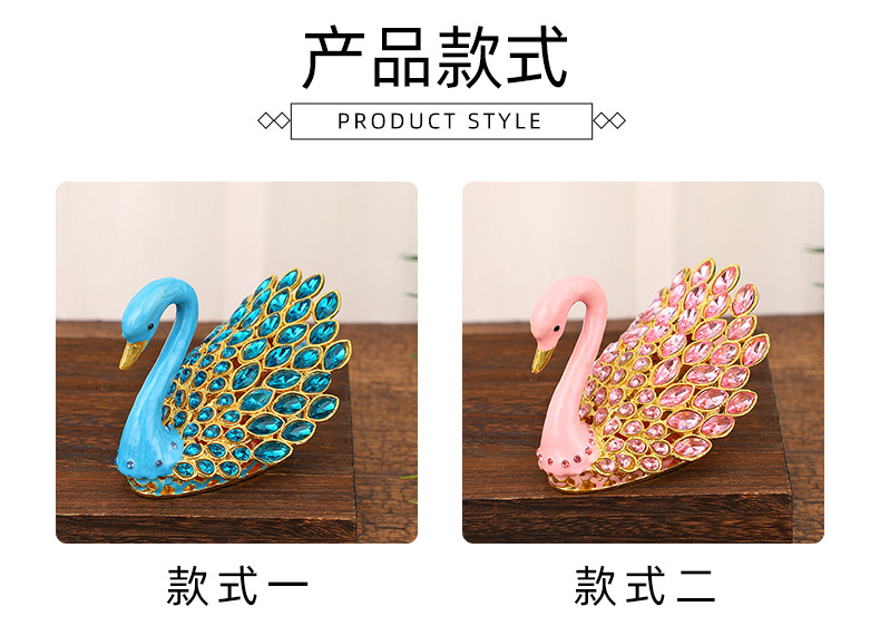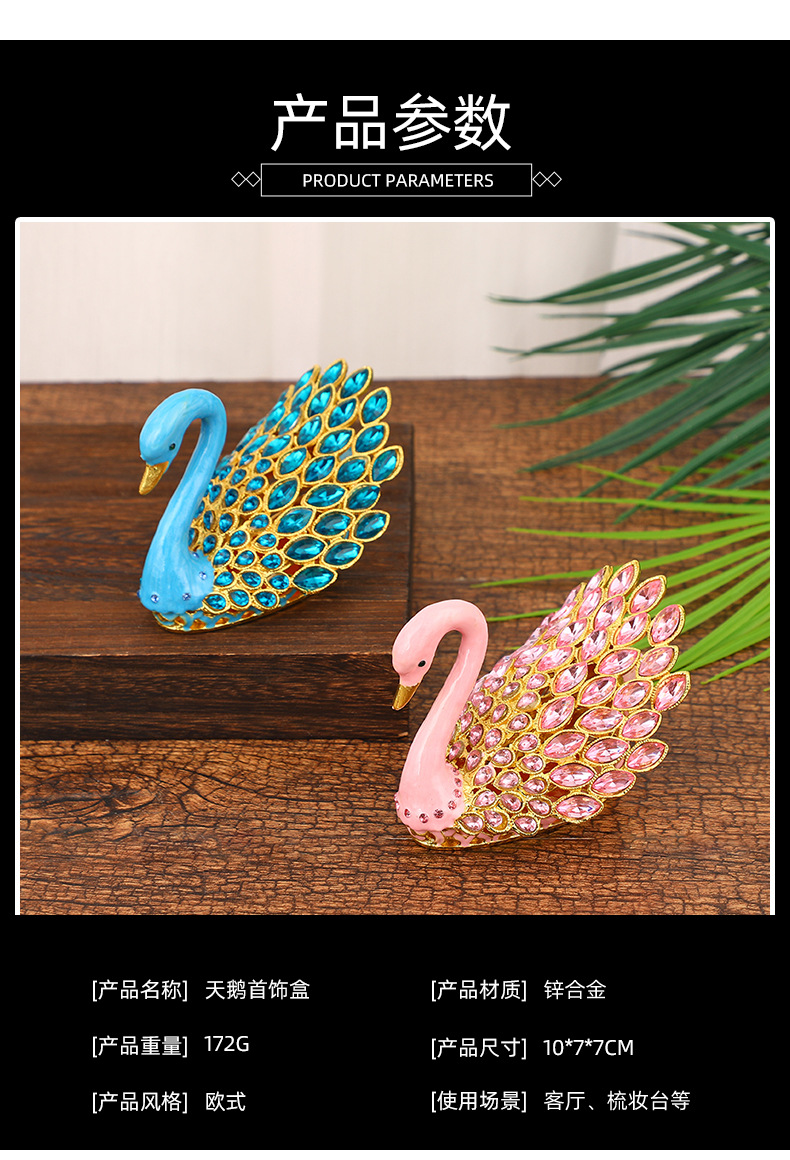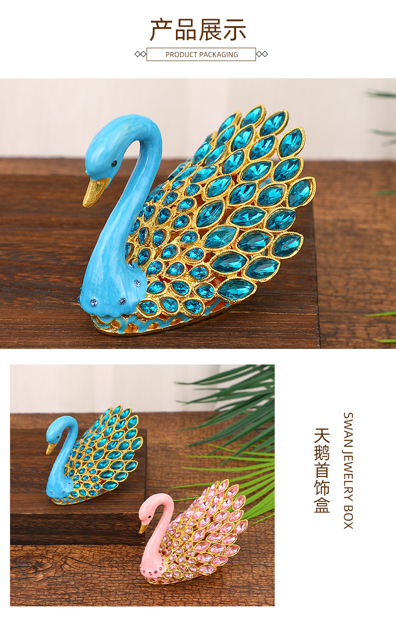 エナメル工芸合金水晶白鳥アクセサリーケース金属置物小さな収納ケースクリエイティブバレンタインデープレゼント