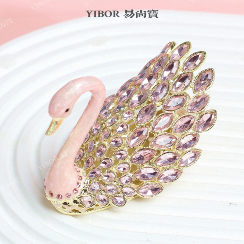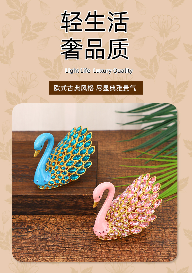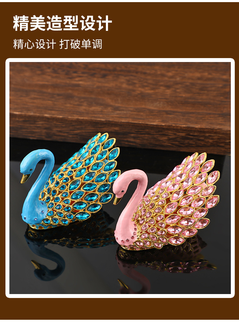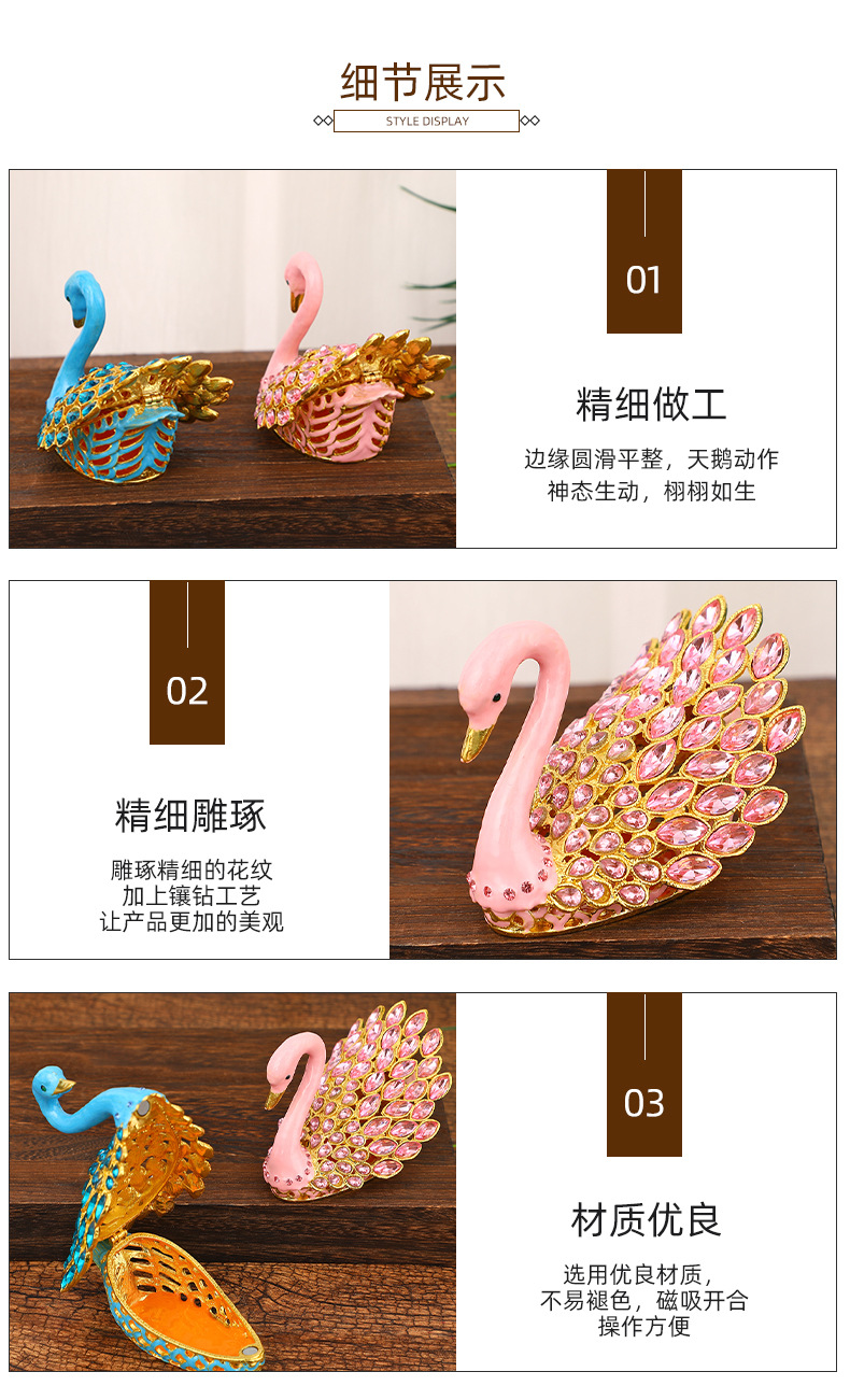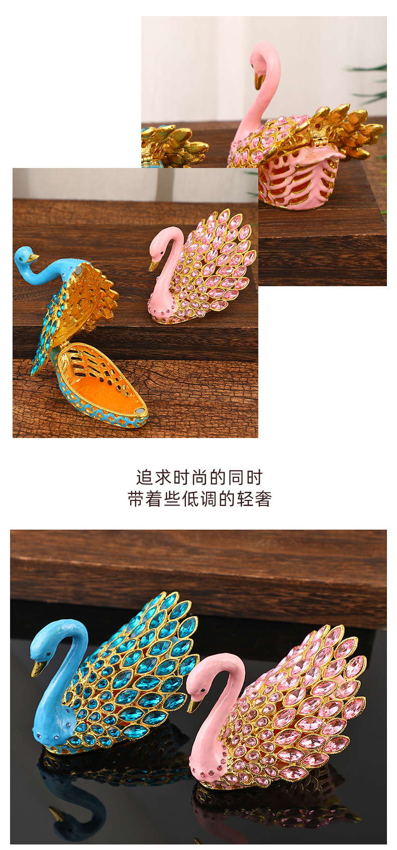 エナメル工芸合金水晶白鳥アクセサリーケース金属置物小さな収納ケースクリエイティブバレンタインデープレゼント