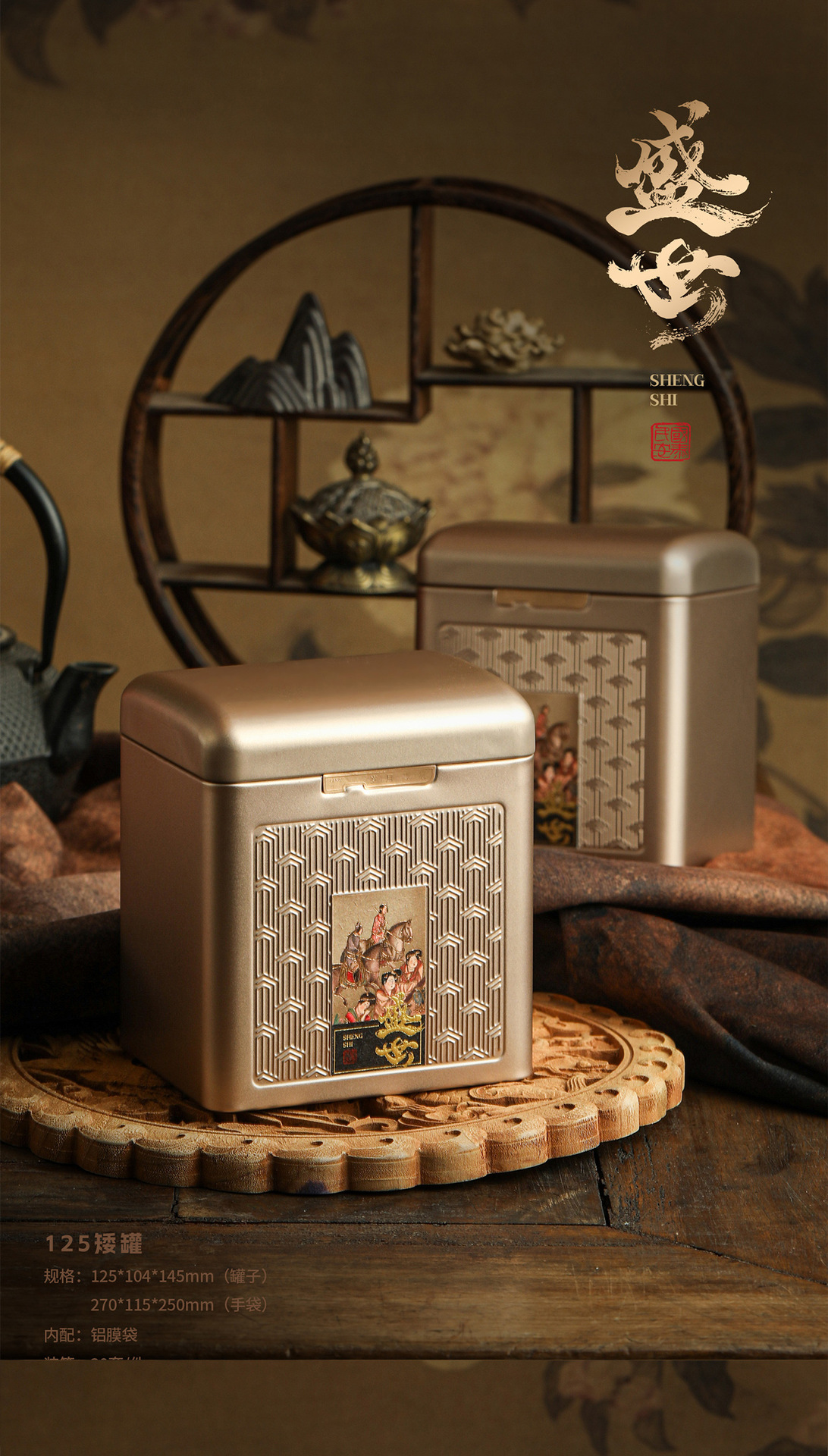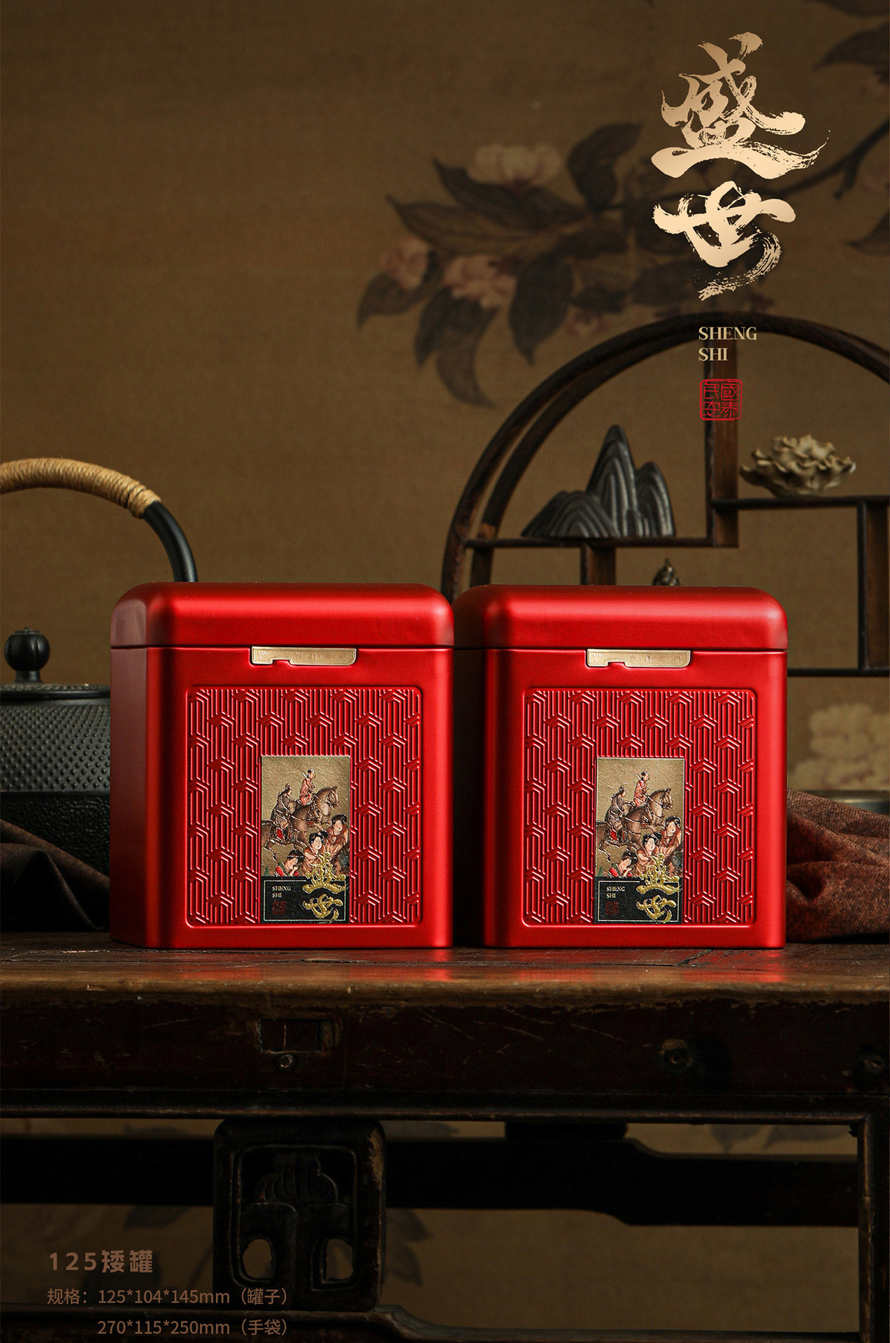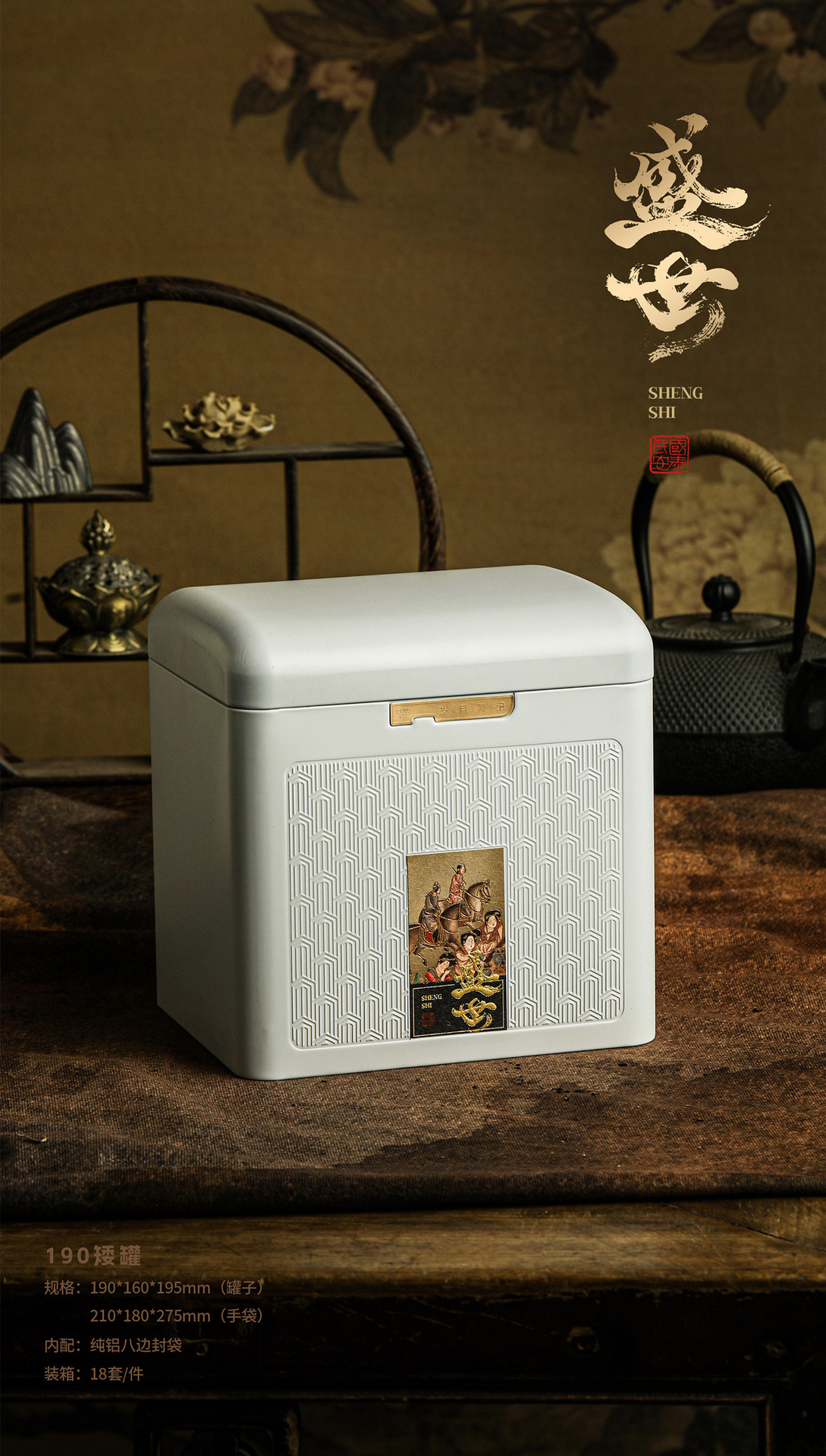 新型茶葉缶華瑞甲古韻シリーズ角缶半斤紅茶プーアル単叢鉄観音通版