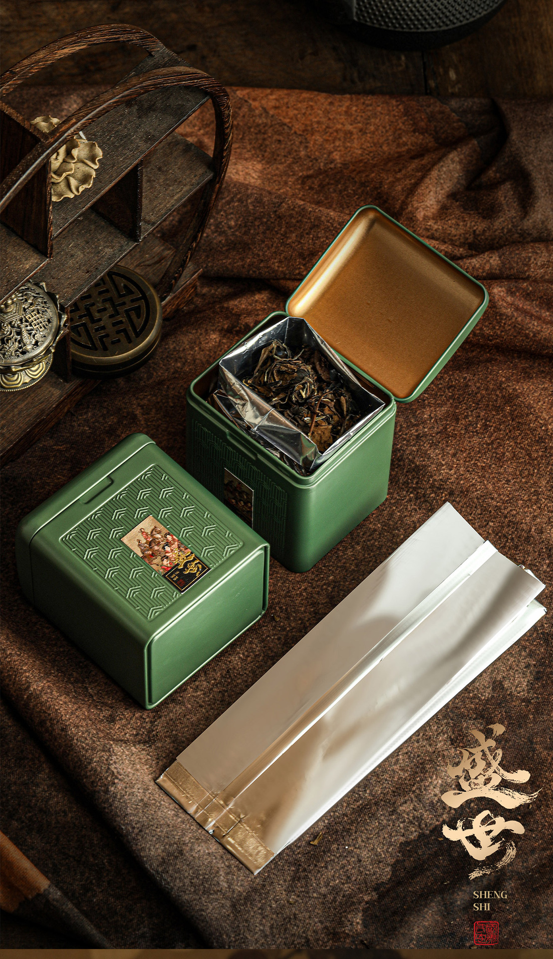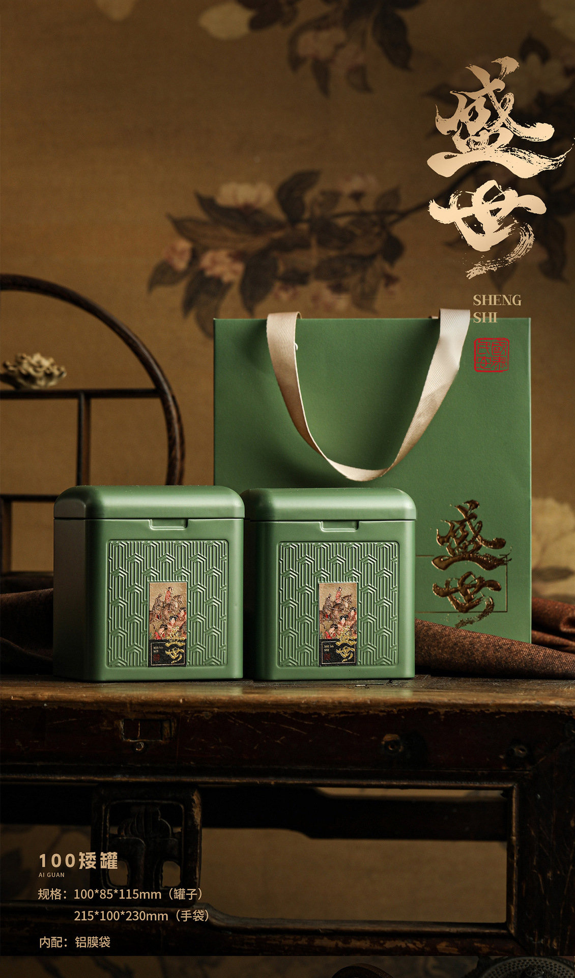 華瑞境シリーズ高級茶葉缶ブリキ通用角缶半斤入り茶葉貯蔵空缶