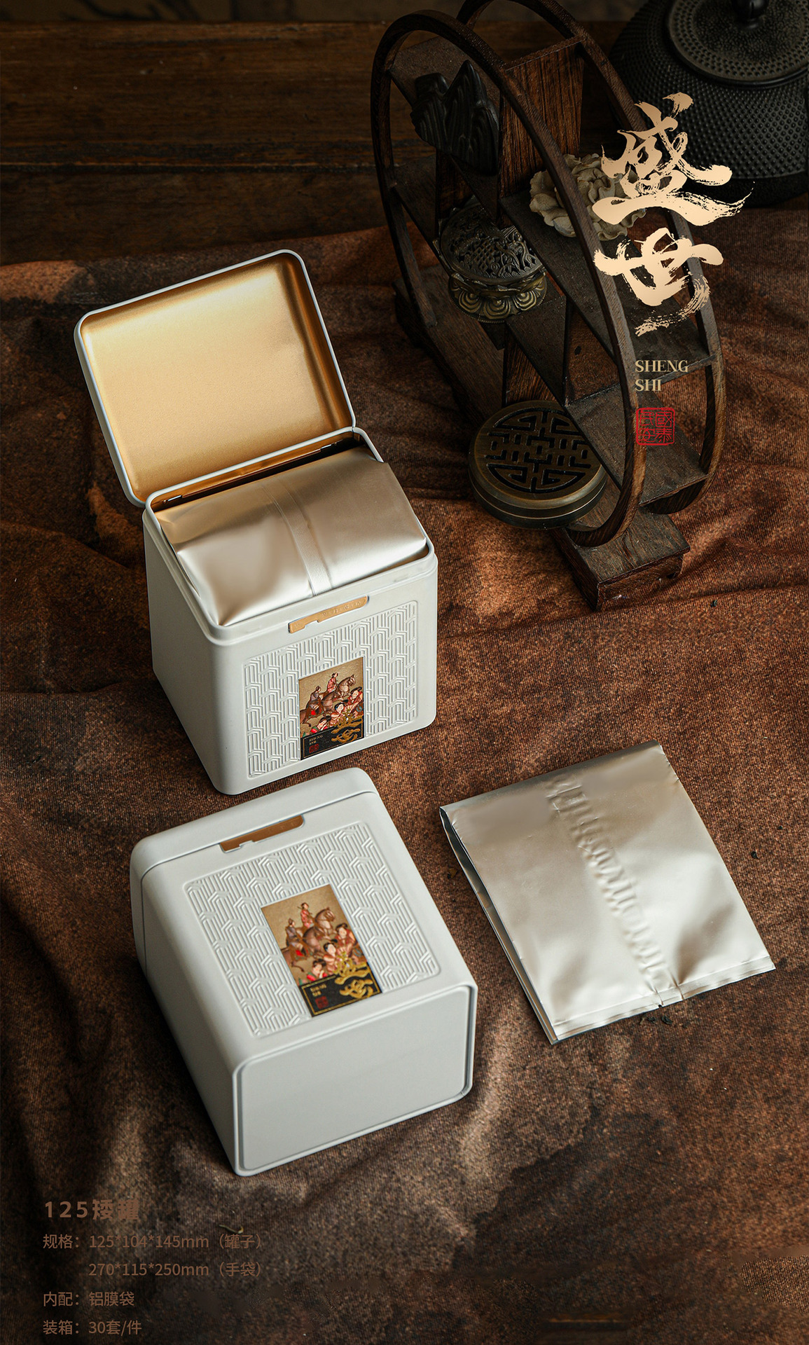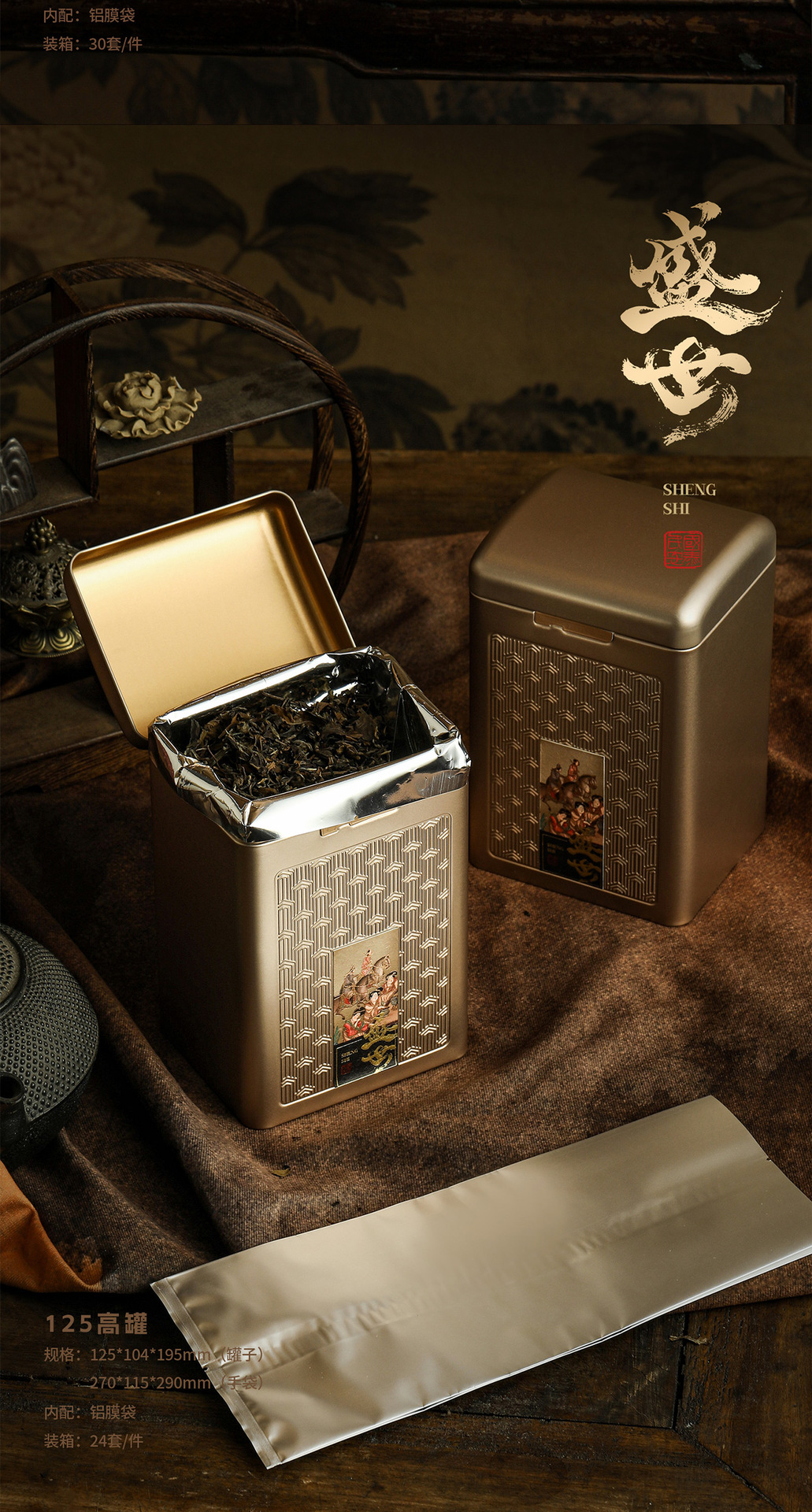 ブリキ茶葉缶白茶大紅袍陳皮包装鉄缶半斤アルミ箔袋茶葉貯蔵缶