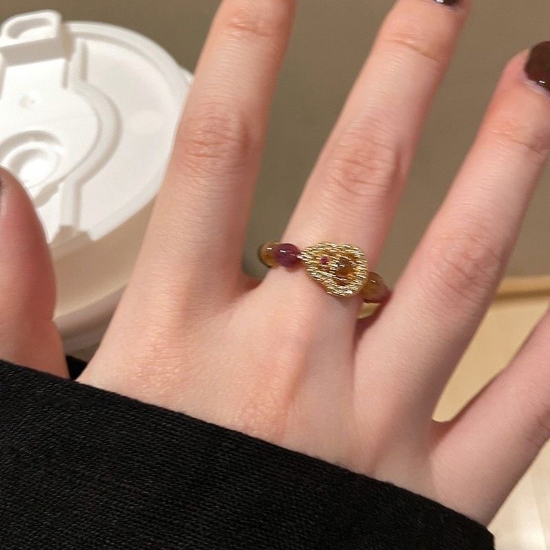 碧璽のヒョウタンの数珠の指輪の女性の秋冬2025新年の新型の食指の指輪の小さい大衆の設計の高級感の指輪