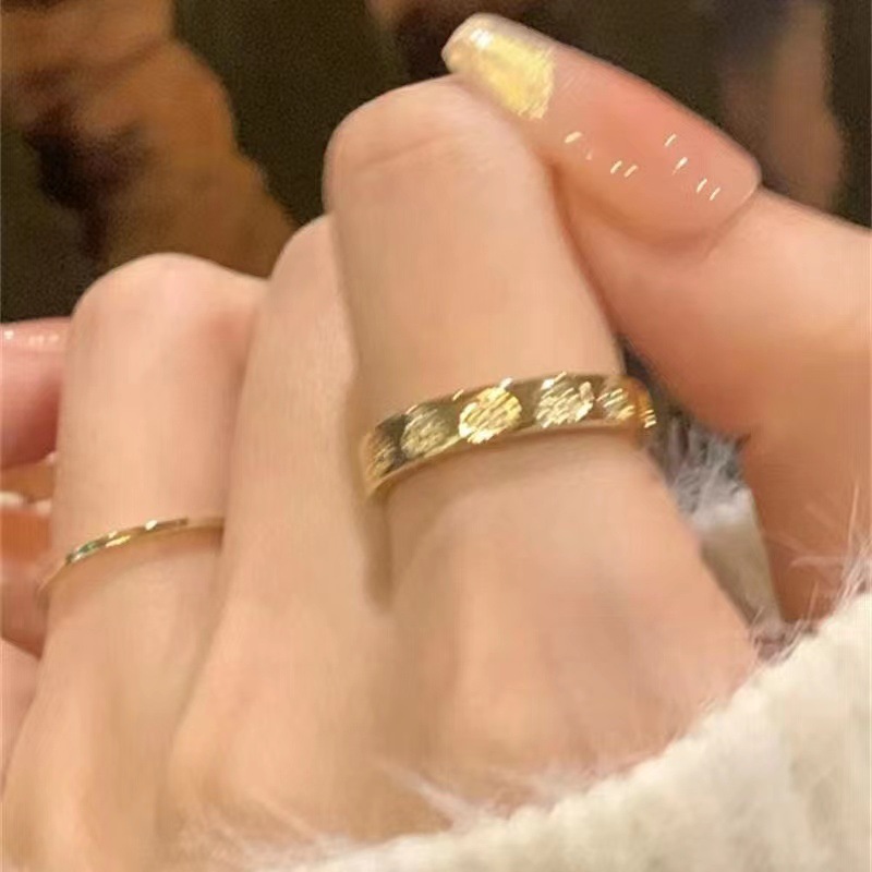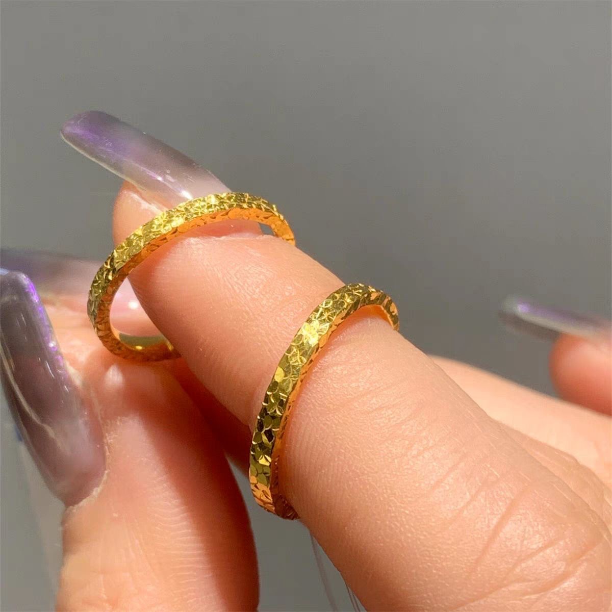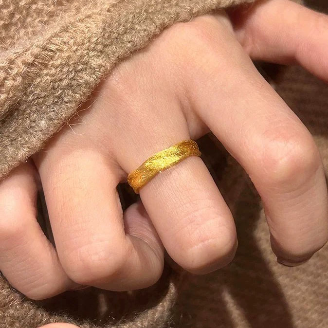 指先星河 ~ 金色のシルクの木目の広い面の素のリングは色を落とさない人差し指の指輪の大衆の独特な指輪です。