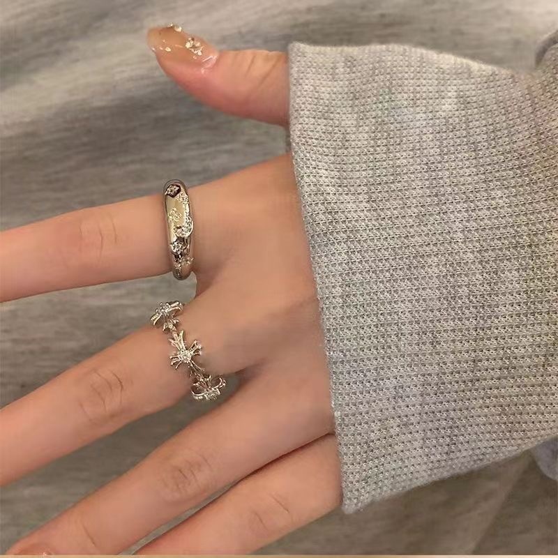 冷たい風 ~ 銀色のジルコンの十字の指輪の女性の大衆の設計のinsの軽い贅沢な食事の指輪の個性のカップルの対戒