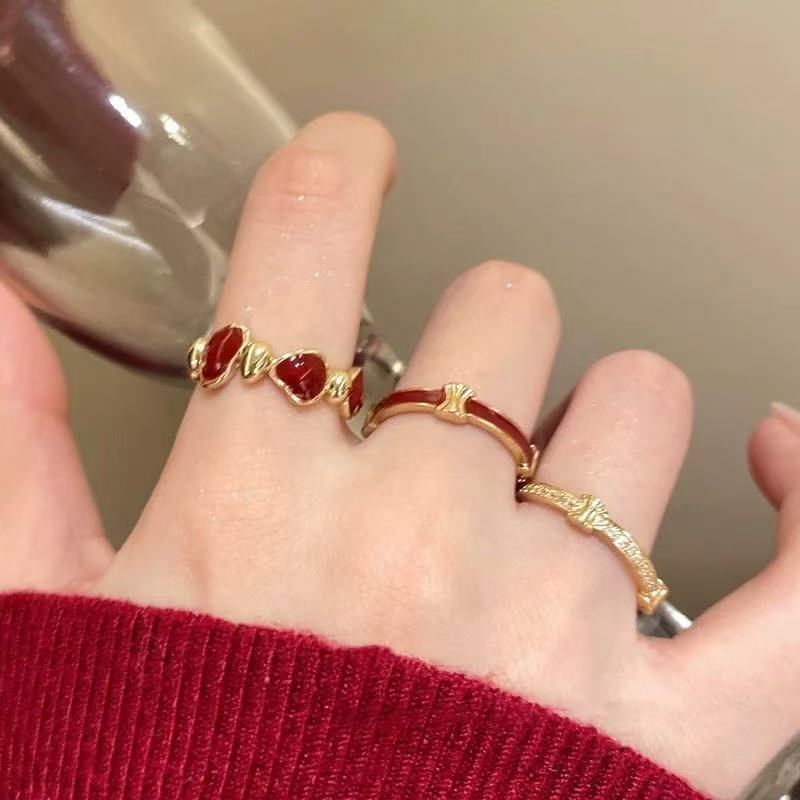 レトロな釉薬の口の指輪の女性の独特な大衆の設計感のカップルの食事の指の指輪のinsの軽い豪華な高級な関節の指輪