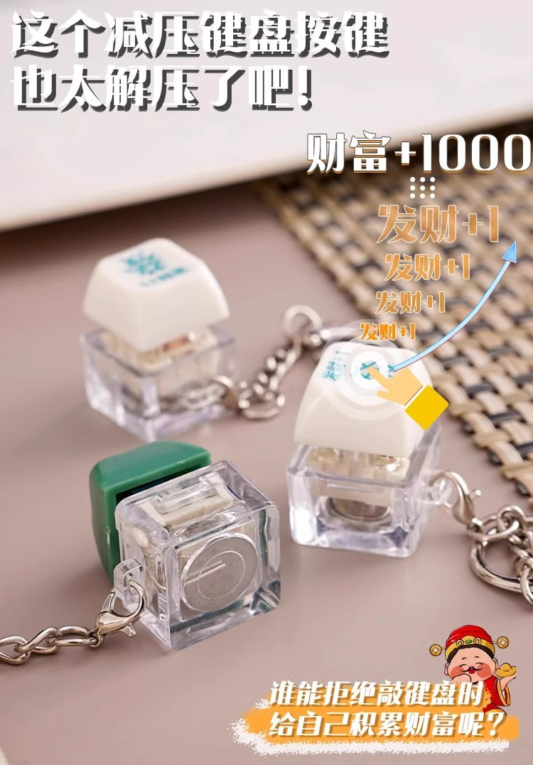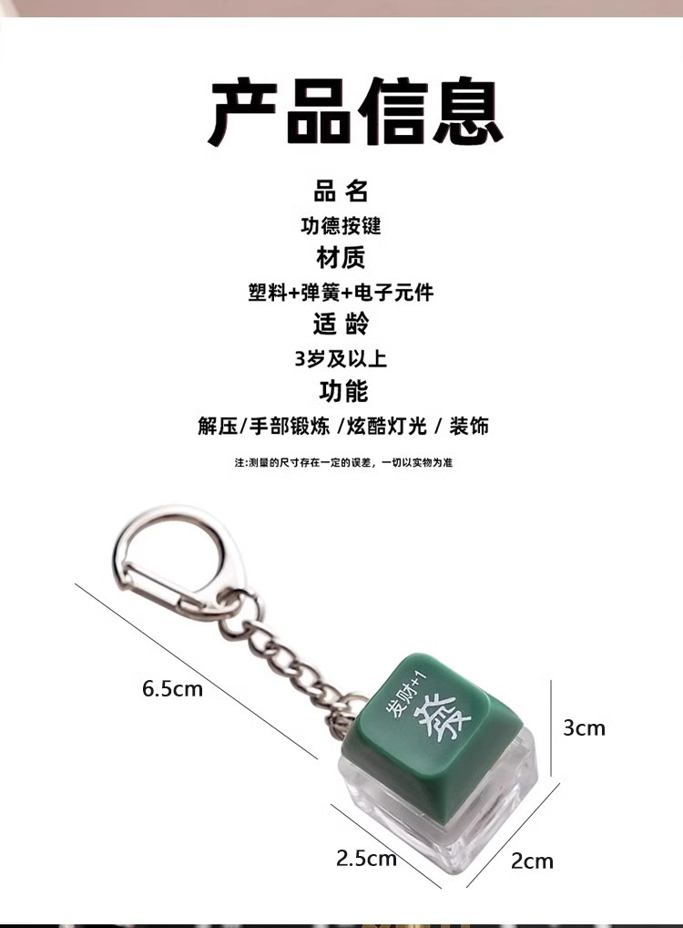 抖音同款功德按键功德加一按键钥匙扣挂件键帽按钮解压赛博朋克键