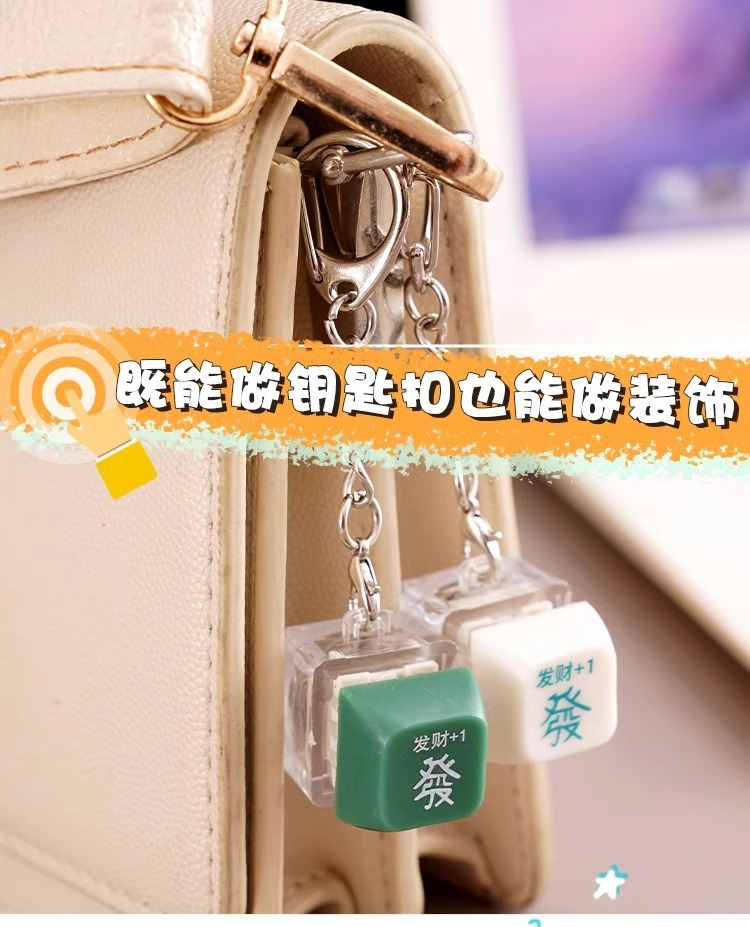 国潮设计创意麻将发财挂件简约骰子书包钥匙扣挂饰礼物日常配饰品