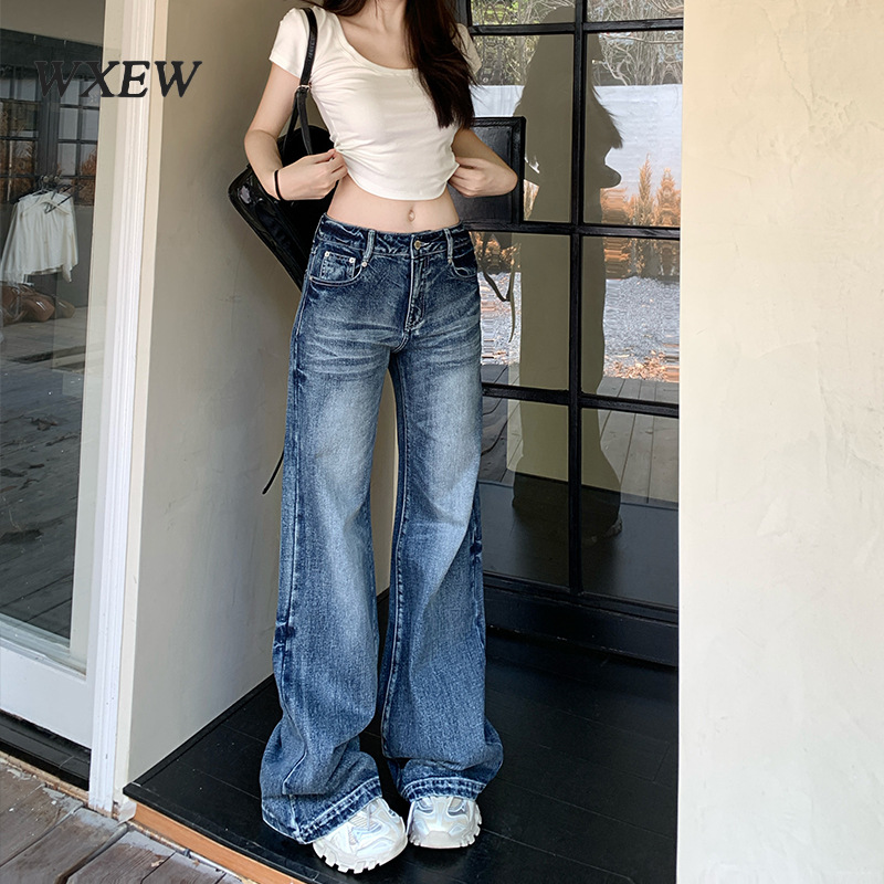 低腰不贴腿牛仔裤女春夏季新款美式复古水洗直筒垂感宽松阔腿裤子
