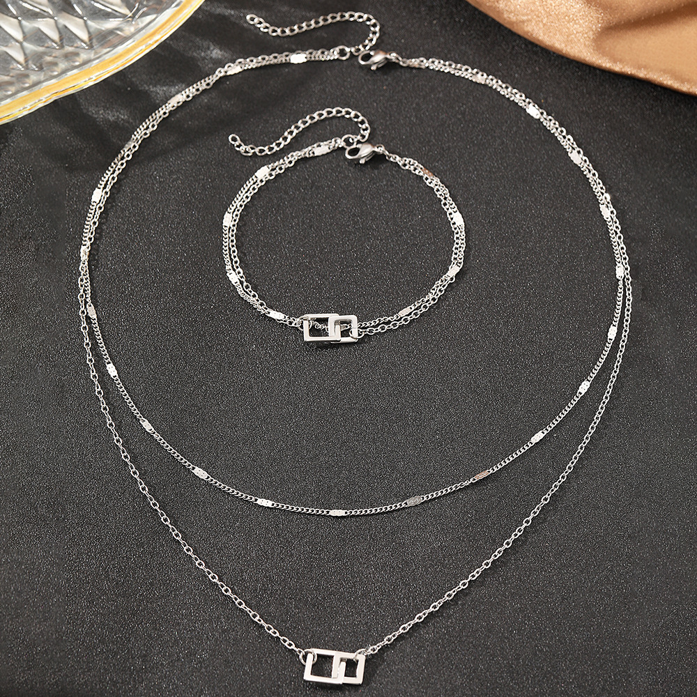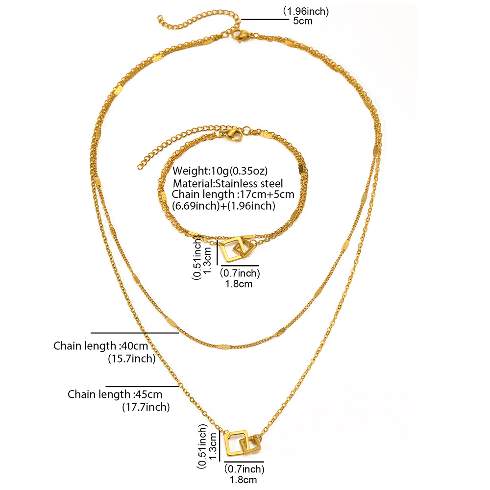 ステンレス2層デザイン幾何学デザインブレスレットネックレスセットファッション鎖骨チェーンバレンタインギフト
