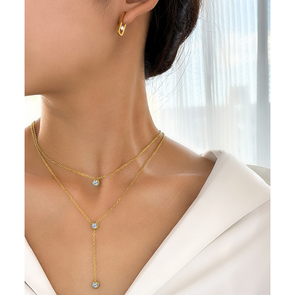 双层水滴吊坠不锈钢项链女高级感小众轻奢冷淡风气质锁骨链配饰品