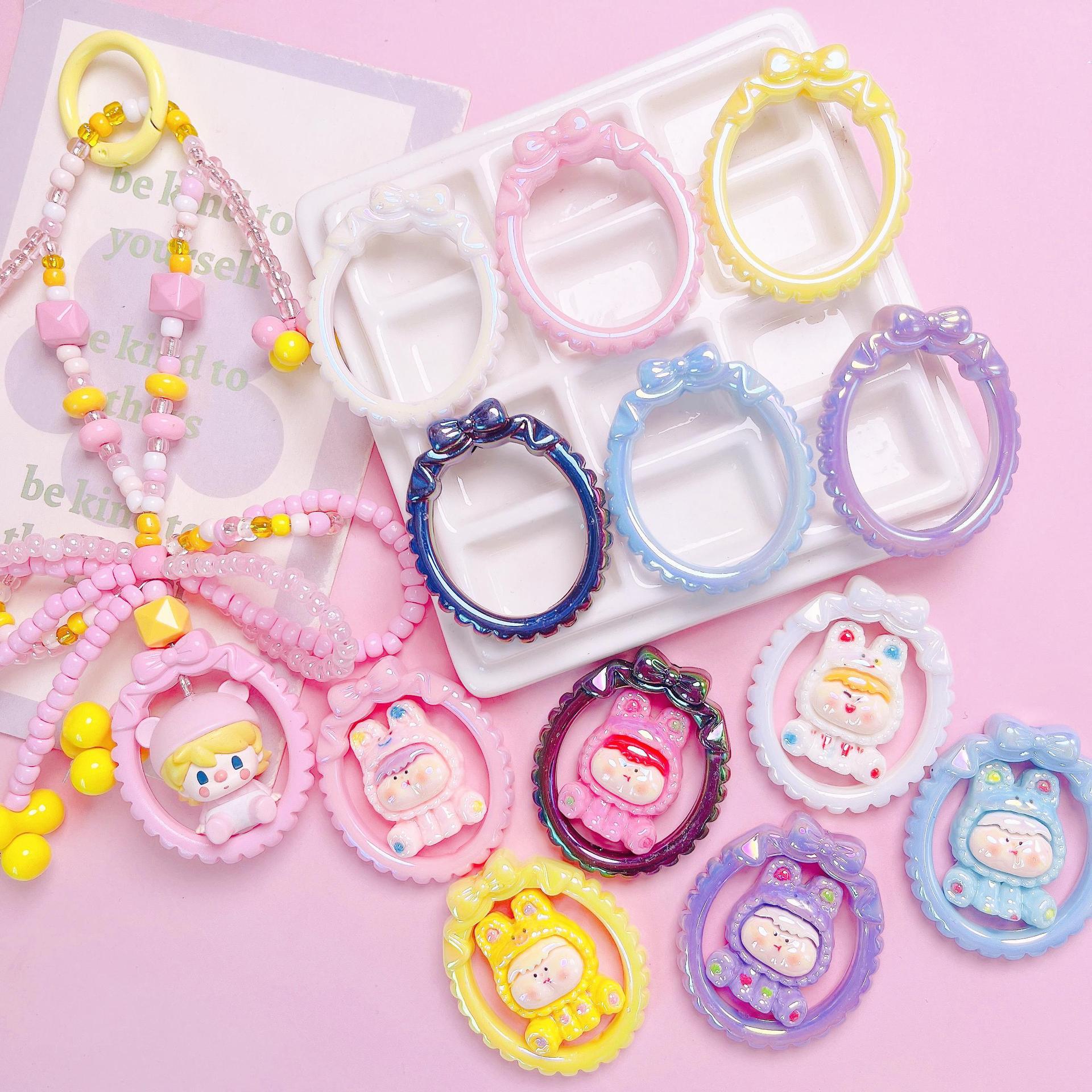 かわいい蝶結びの楕円のフォトフレームの花輪の数珠diyの携帯電話のチェーンのキーホルダーの車の掛けの材料のアクセサリの部品