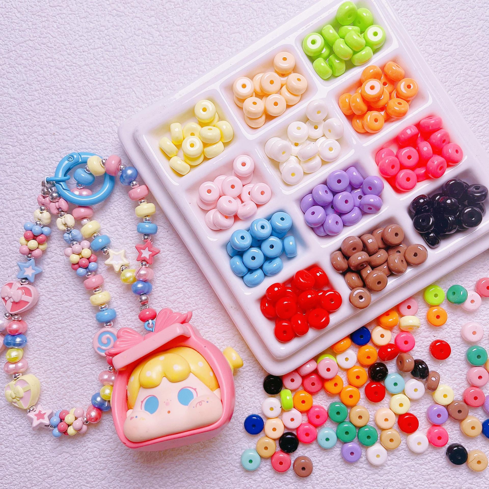 円柱6mm同モデル携帯チェーンinsビーズアクセサリー手作りアクセサリー散珠多色グラデーションアクリル実色ビーズ