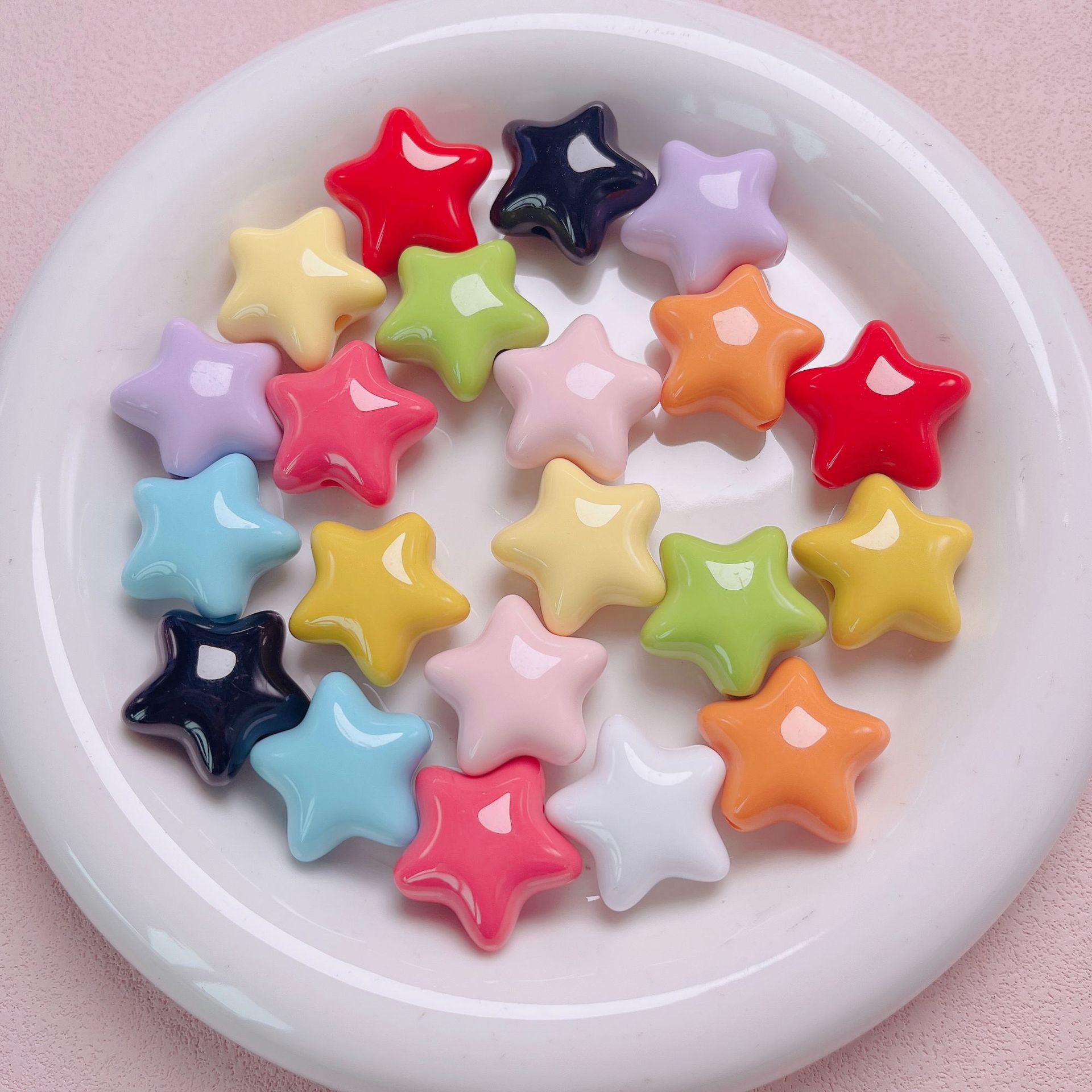 カラー太った五角星アクリル実色ビーズDIY手作り材料部品散珠ストラップアクセサリー部品