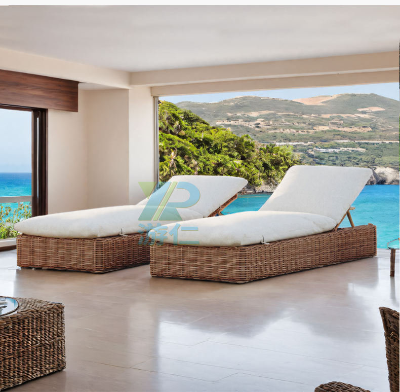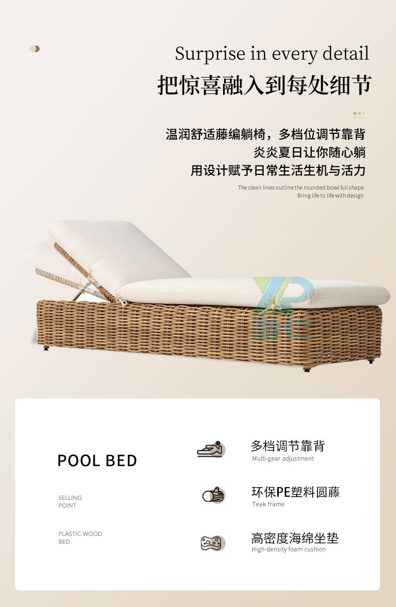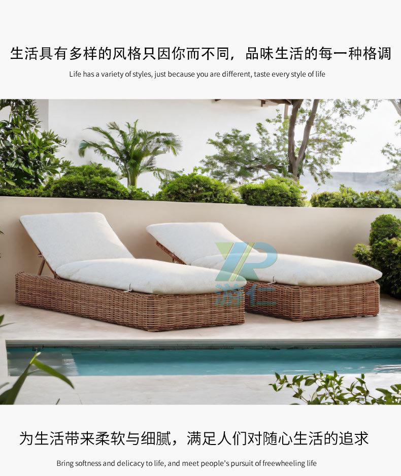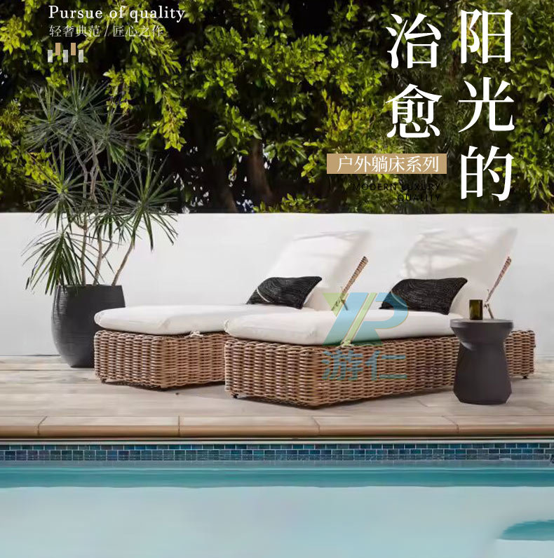 屋外藤編ベッド屋外庭園バルコニーガーデンプール寝椅子民宿リゾート防水日焼け止めビーチ椅子