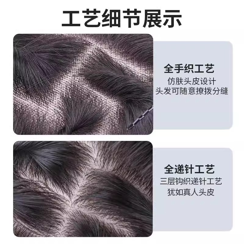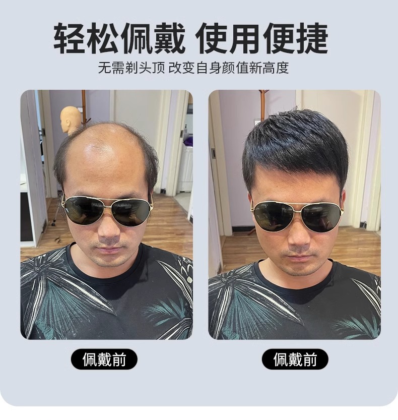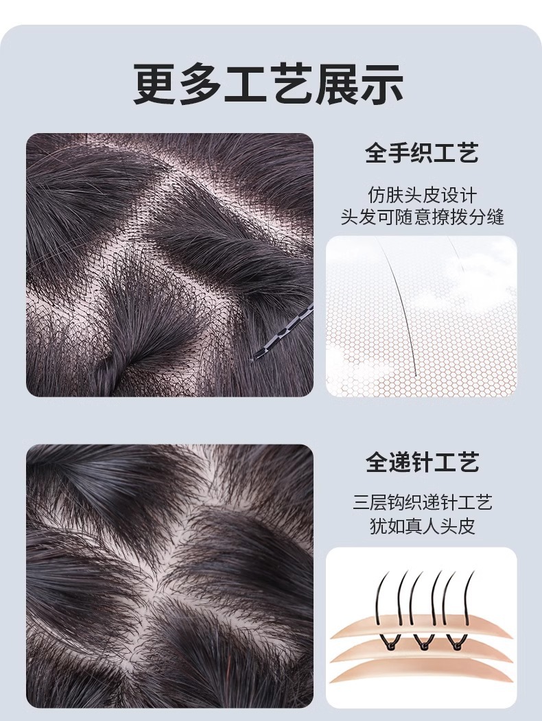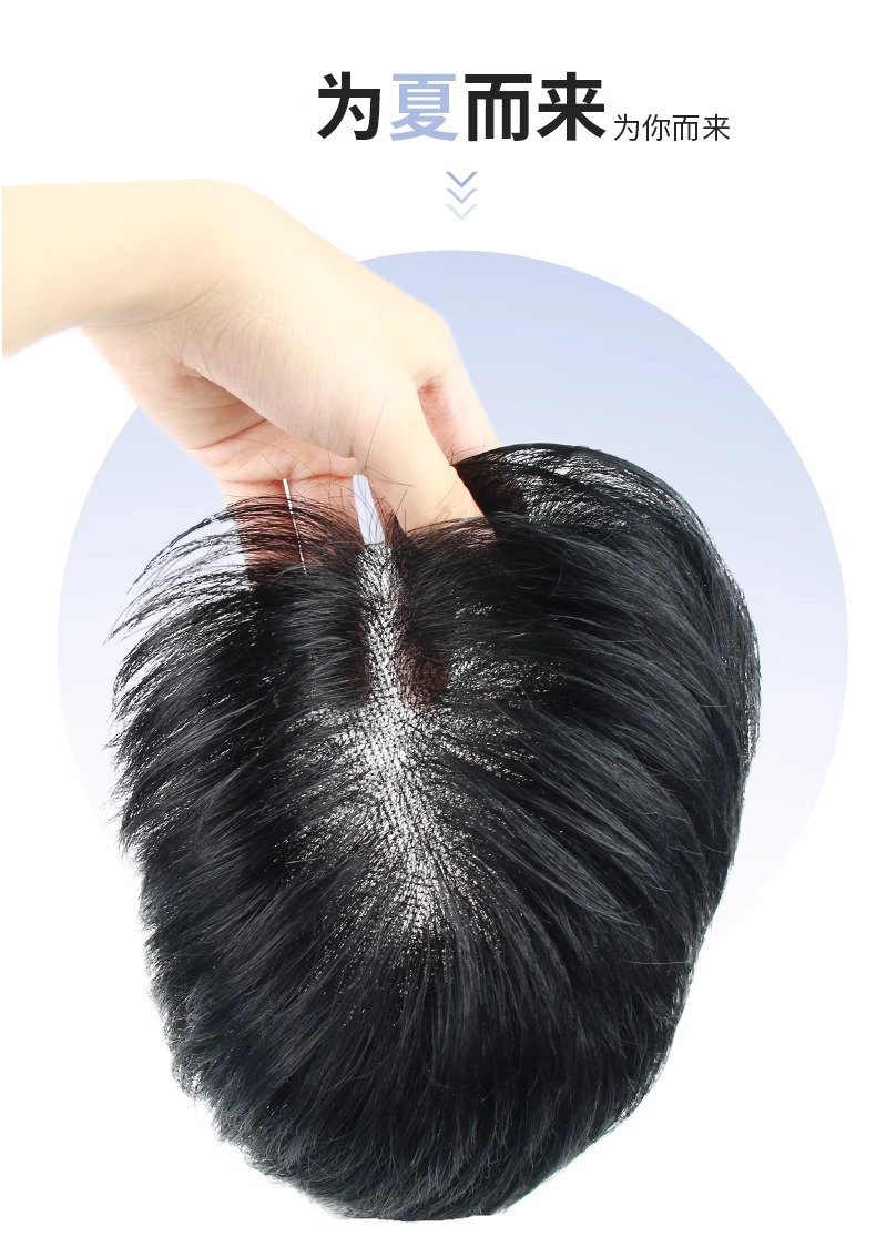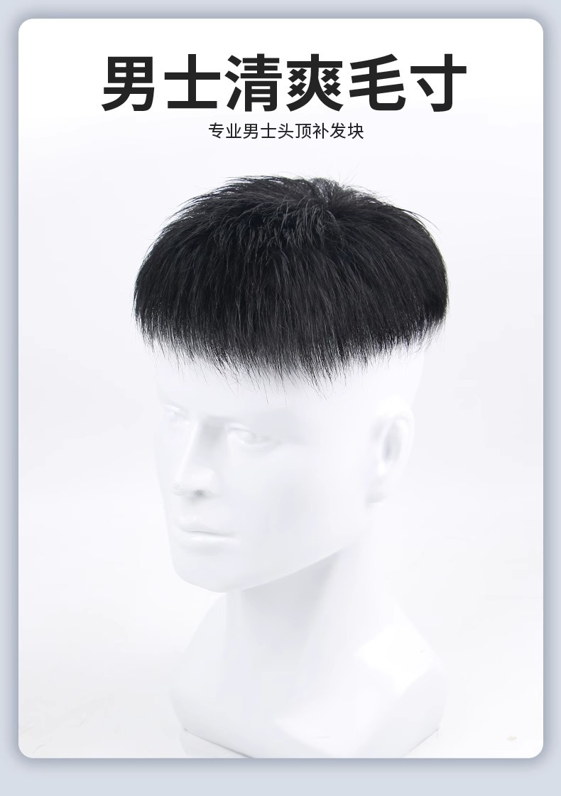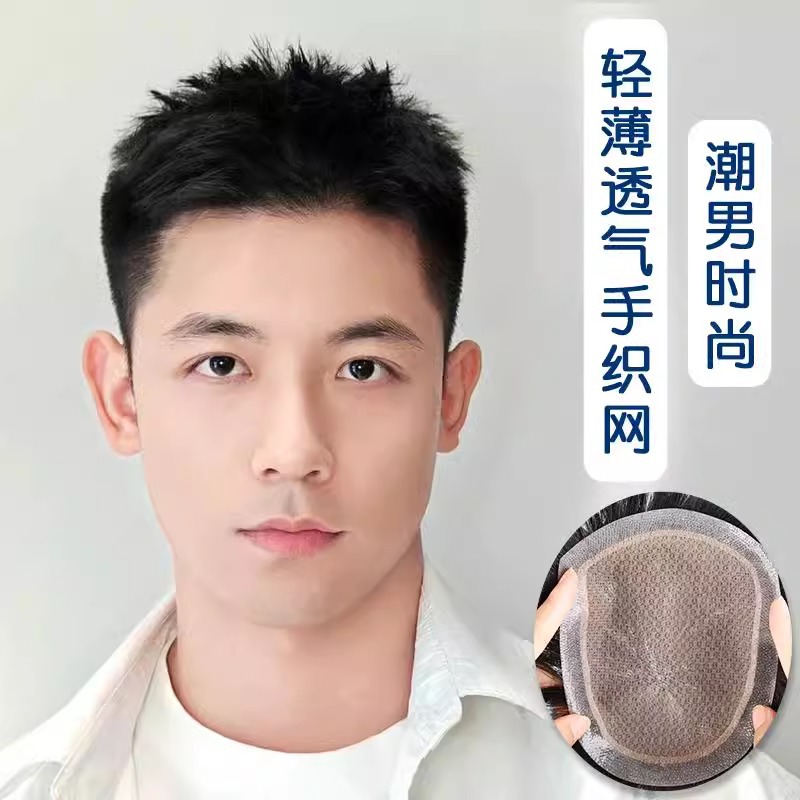 かつらの男性のショートヘアの頭の上に男性のファッション三七分の本物の髪が薄くて通気性のある髪の線が自然にリアルです。