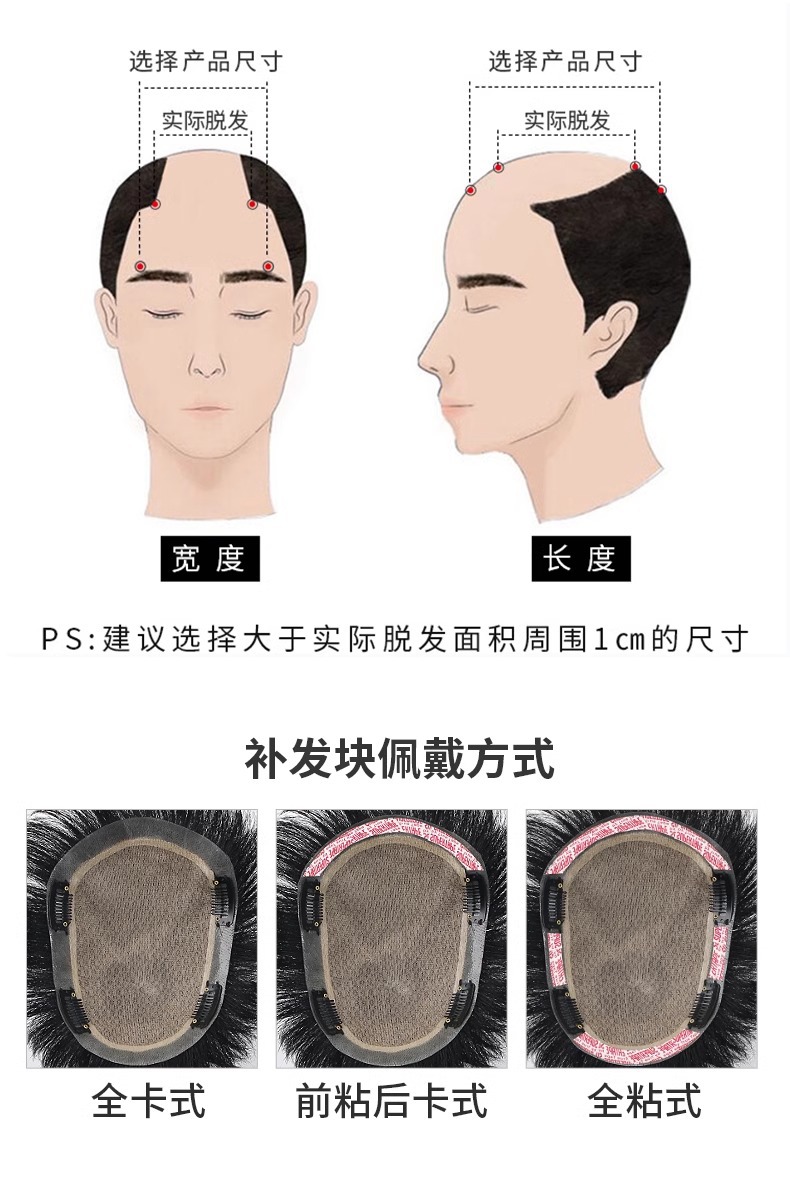 かつら男のショートヘアの毛寸の頭の上で髪を補います。