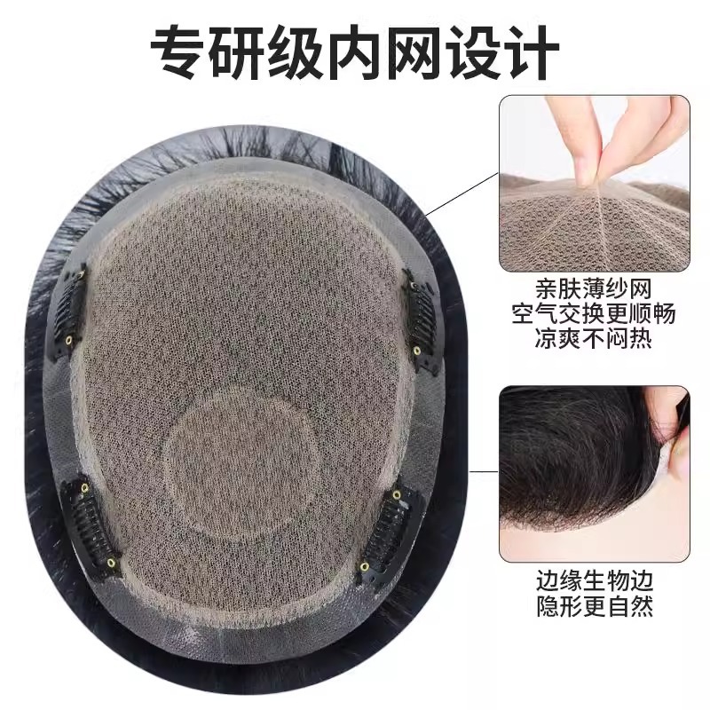 かつら男子の短髪毛寸全真髪は自然に目に見えない薄っぺらで通気性のある男性がかつらを切って髪を直します。