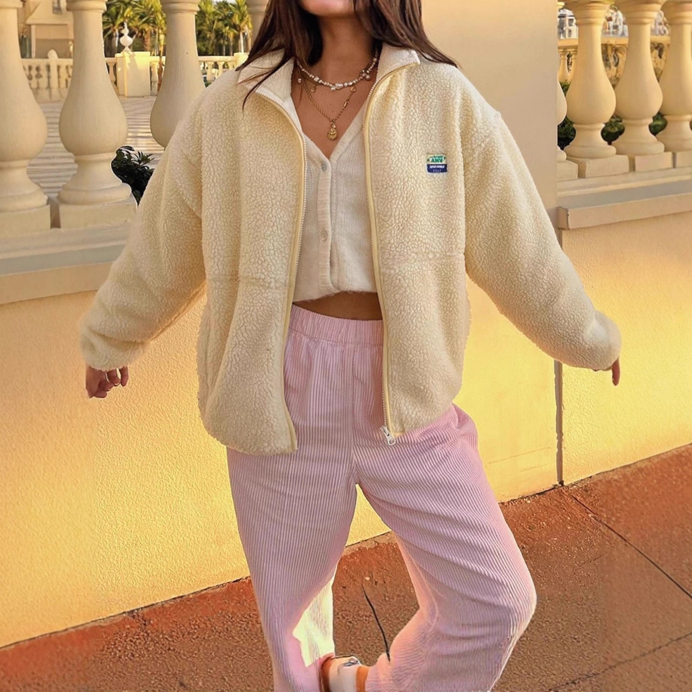 2025休闲长袖摇粒绒拉链上衣外套女冬欧美跨境女高级欧美风