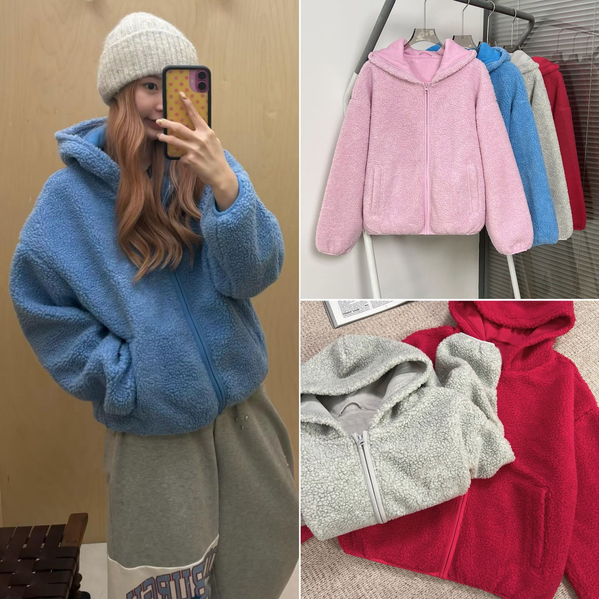 韩国egg25秋冬原原 美式宽松休闲保暖拉链高领女士摇粒绒夹克外套
