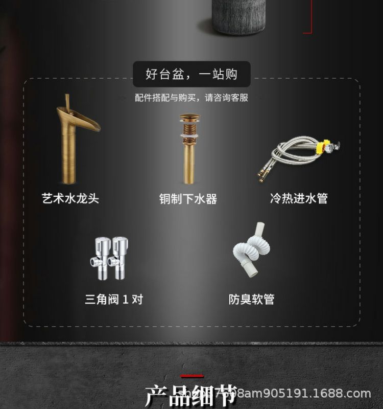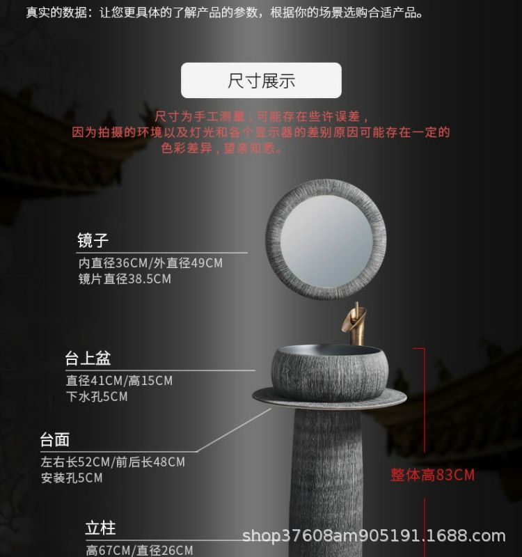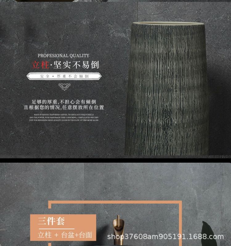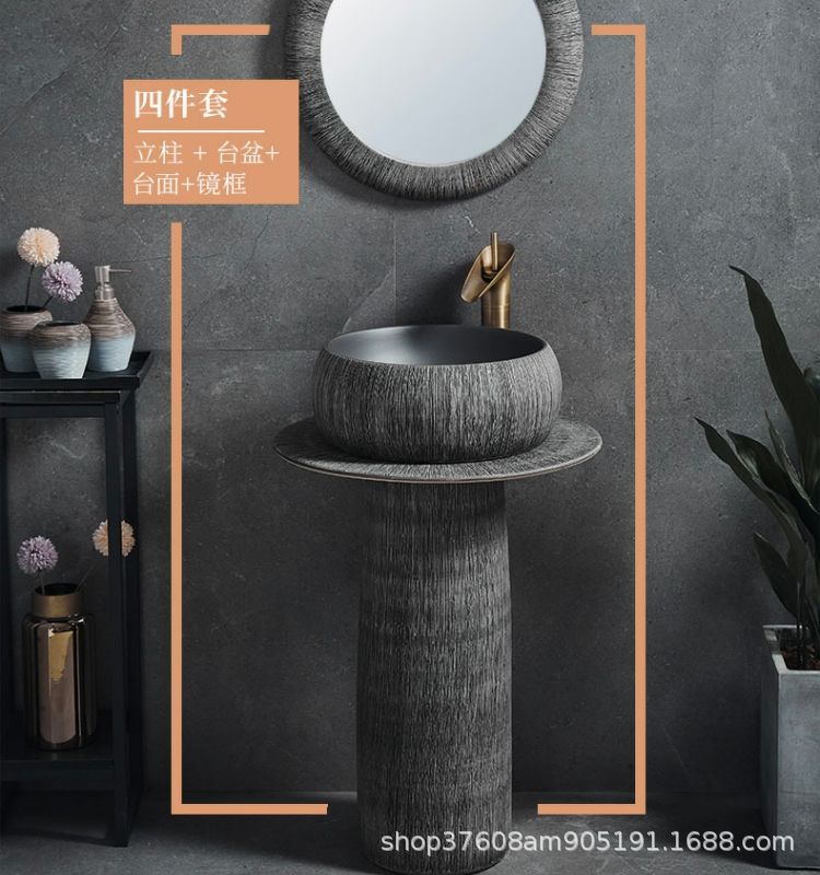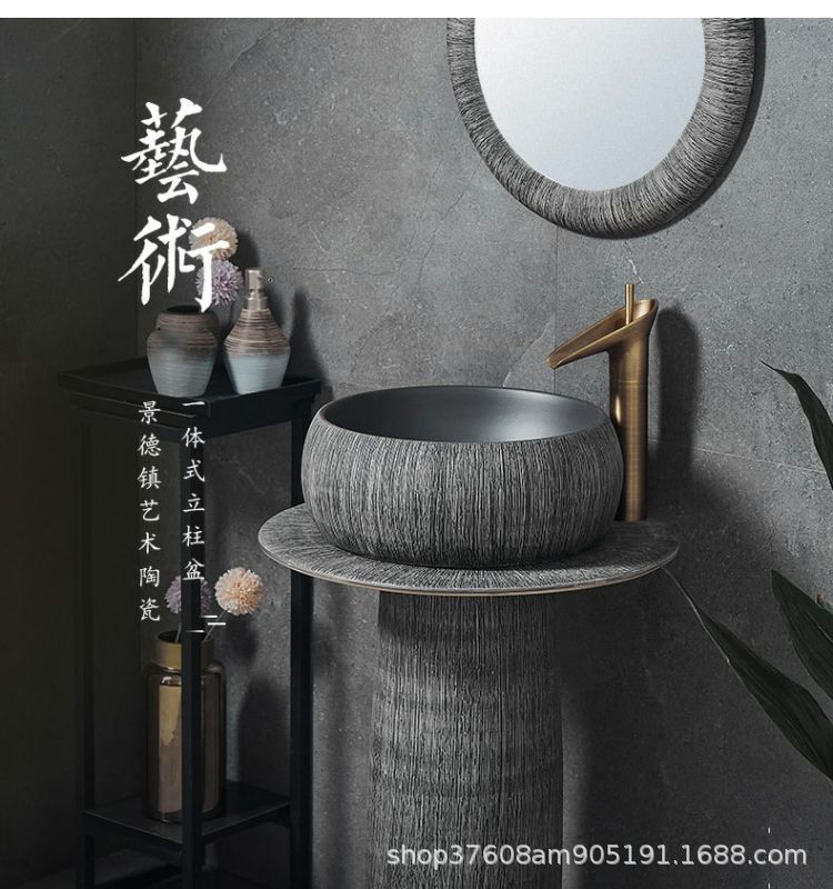 陶磁器一体床置き式立柱洗面器レトロ芸術民宿家庭用洗面器ベランダ池立柱盆