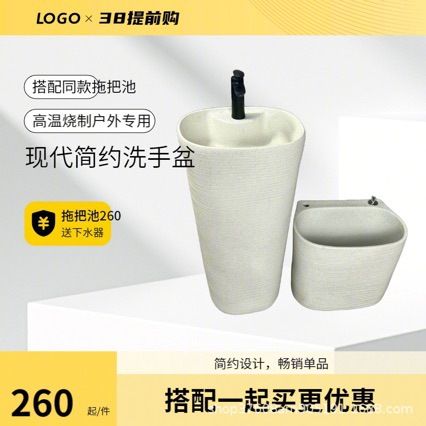 户外洗手盆卫生间立柱式洗脸盆台池阳台庭院水池台盆一体落地柱盆