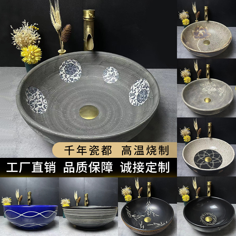 景徳鎮陶器製洗面台、アートレトロ風、家庭用、防滴、洗面器、洗面ボウル、単体洗面器