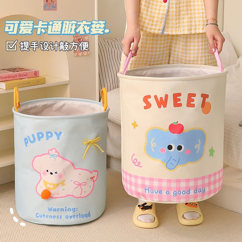 Ins風漫画布芸収納桶綿麻汚れ服バスケット衣類収納枠家庭用折り畳み可能整理枠