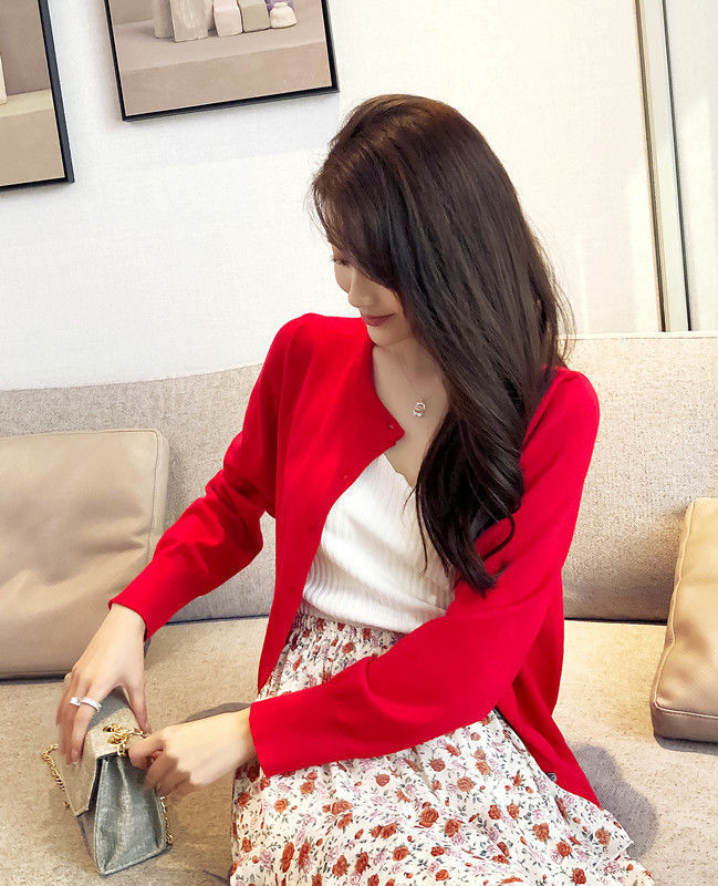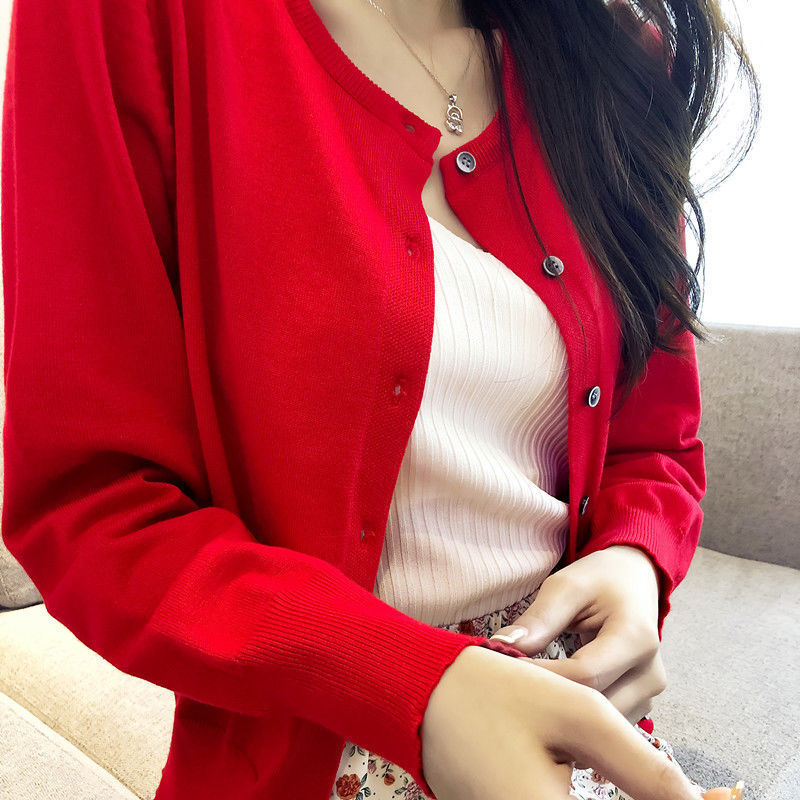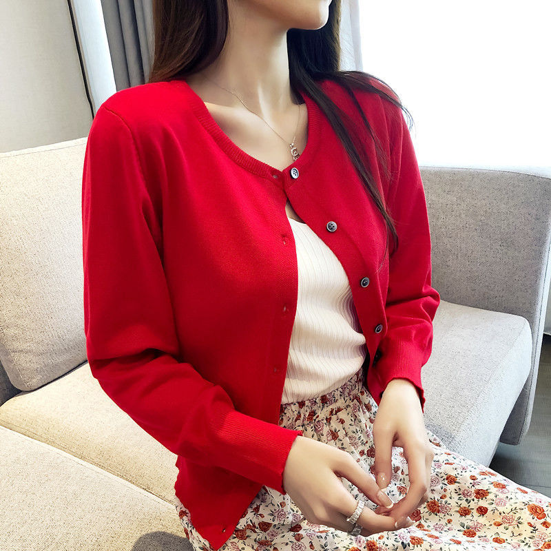 春秋の婦人服の新型の洋風のニットのカーディガンの上着の長袖の丸首の上着の女性の短いタイプのファッションの外はセーターを着ます。