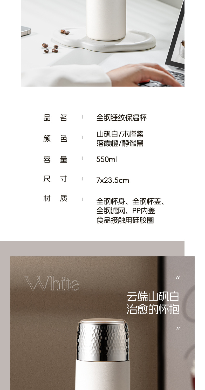 ナイトホワイト 550ml(316ライナー、20時間保温35度),オブシディアンブラック 550ml (316ライナー、20時間35度保温),アプリコットイエローオレンジ 550ml(316ライナー、20時間保温35度),アオイパープル 550ml(316ライナー、35度で20時間保温),ブラック 500ml(ハンドルカバー付き、35度で20時間保温),グレー 500ml(ハンドルカバー式、20時間保温35度)