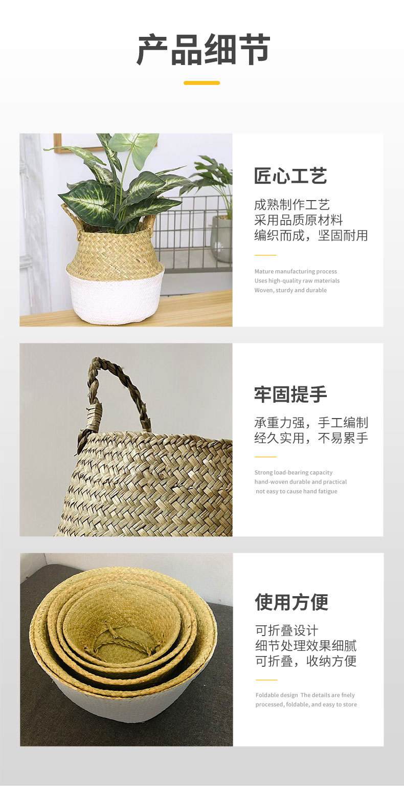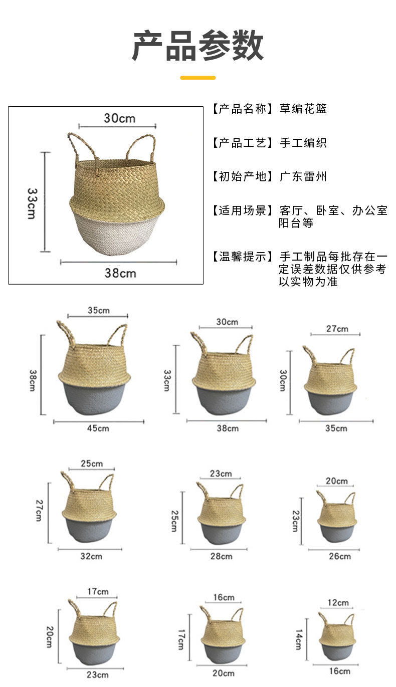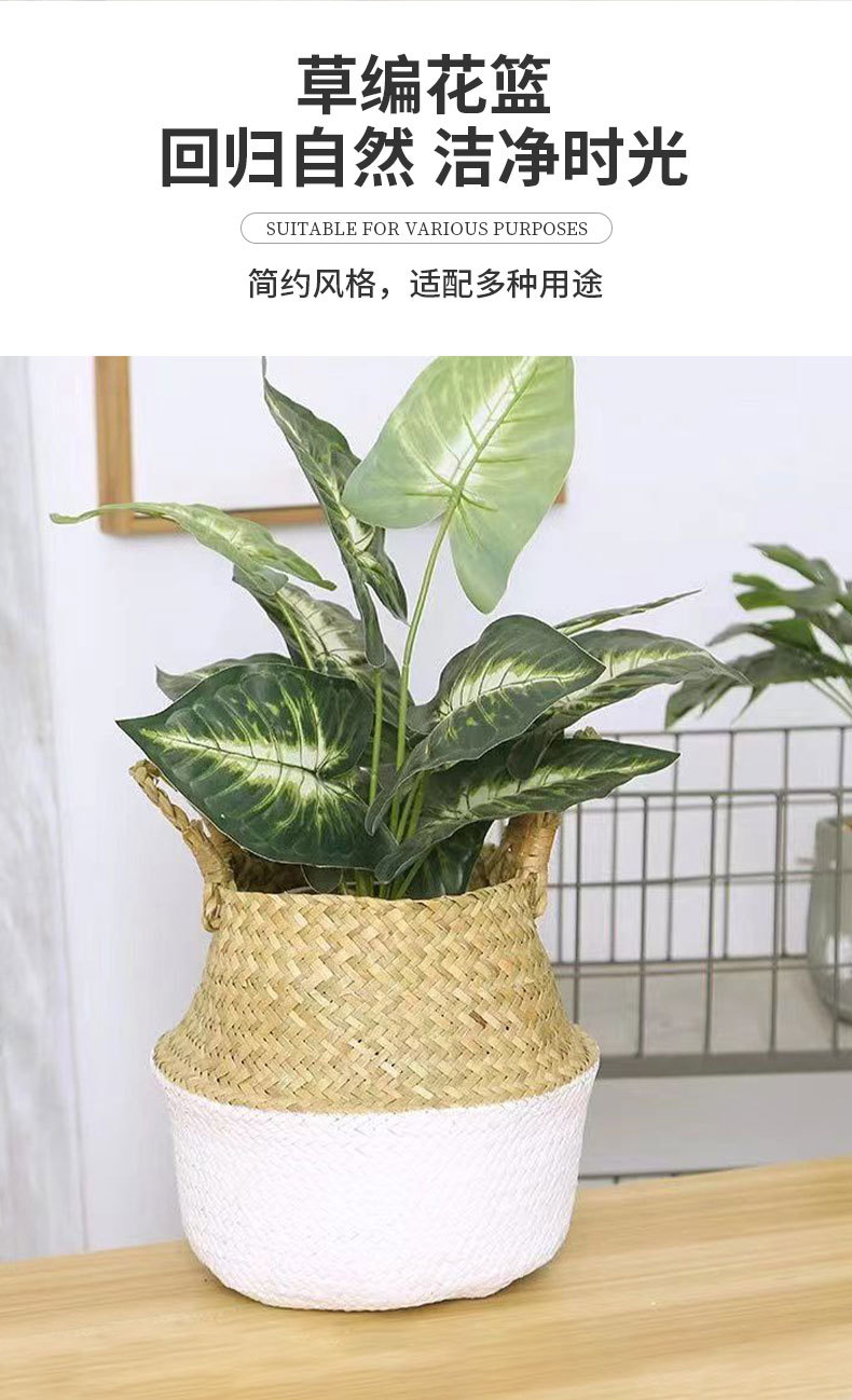 大腹かご草編み植木鉢レトロ海草編み花かご天国鳥琴葉亀背イケア折り畳み収納かご