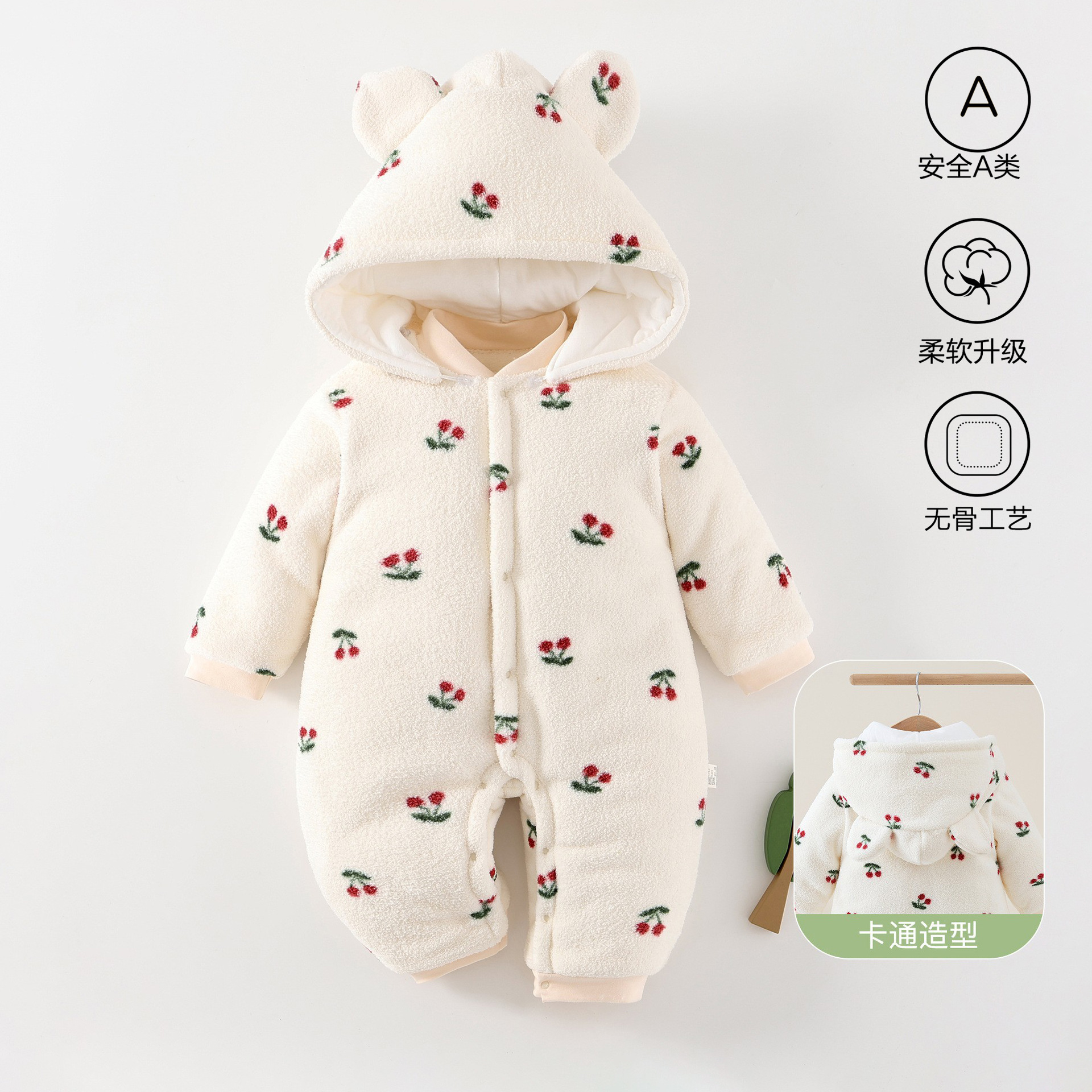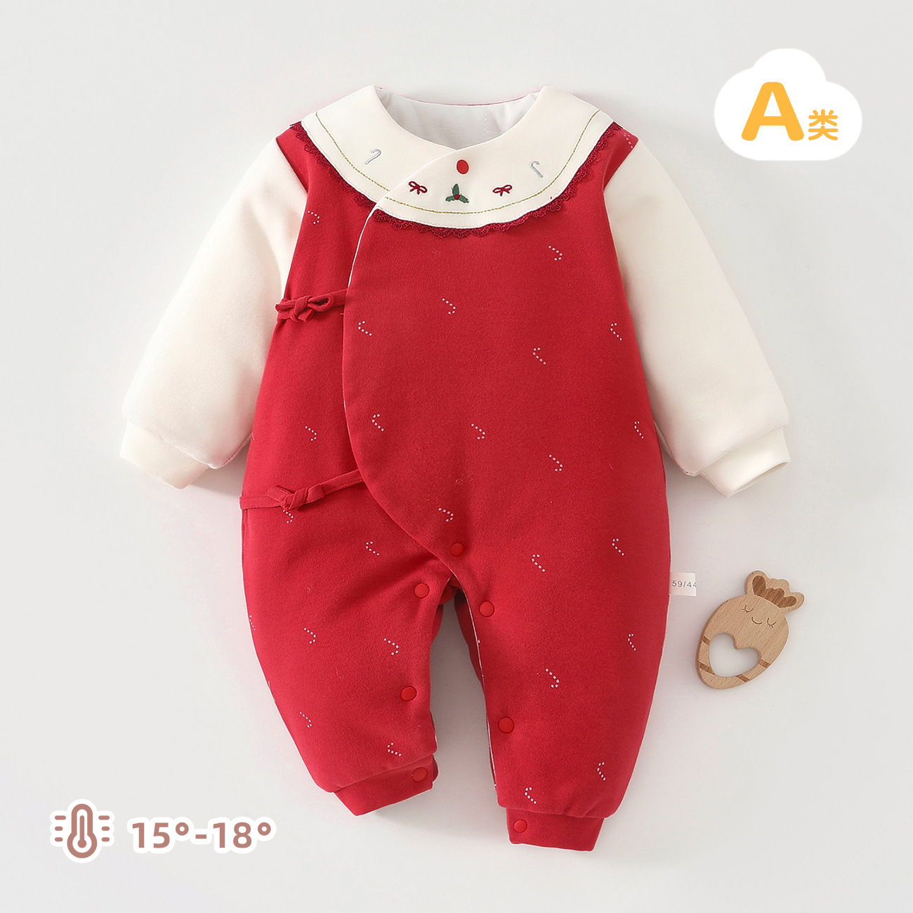婴儿冬季保暖夹棉连体衣a类绣花棉衣哈衣新生儿冬装新年红外出服