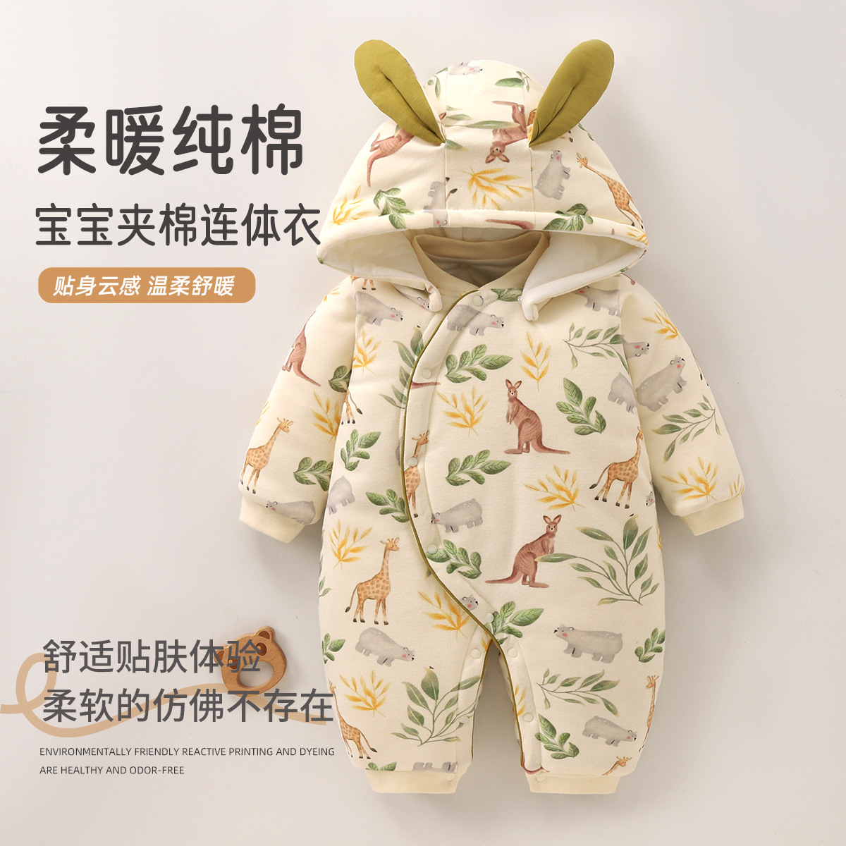 220g婴儿棉服夹棉连体衣宝宝婴儿外出服带帽加厚拜年服宝宝连体衣