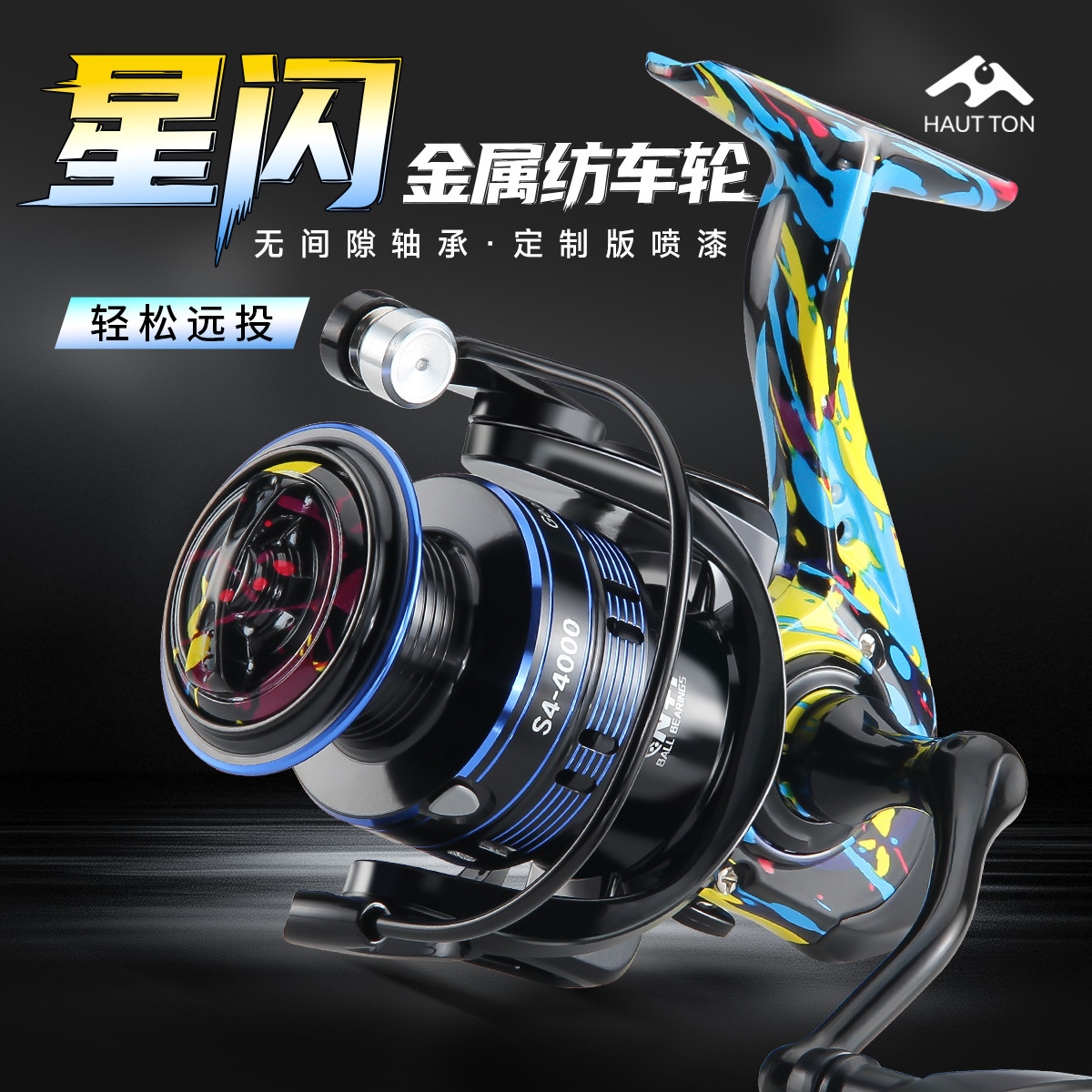 皓顿远投泛用渔轮5.2:1速比鱼线轮无间隙路亚轮涂鸦纺车轮批发 S4