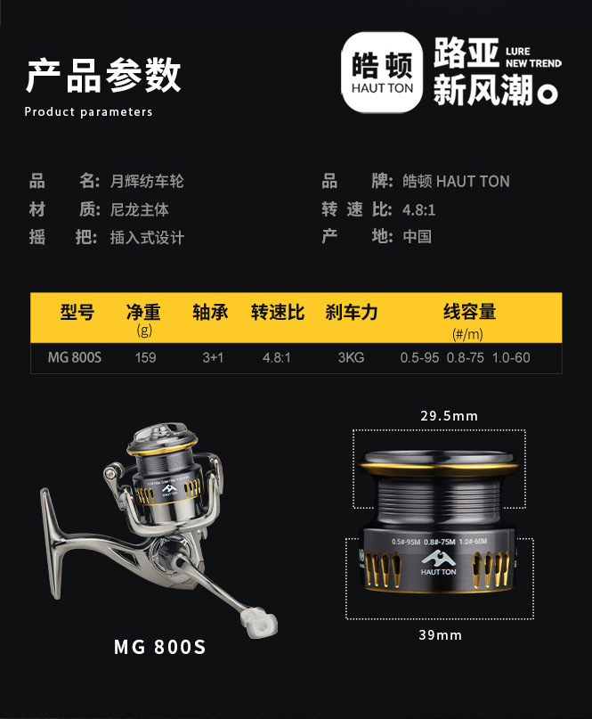 皓トン無隙間漁輪卸売り魚輪4.8:1速比路亜微物紡輪800型浅線カップMG