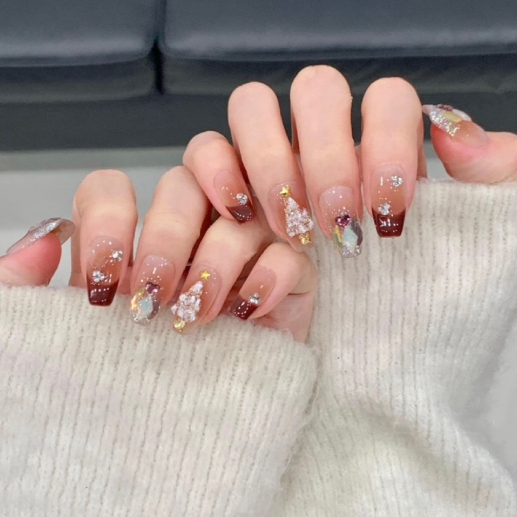 【遊園地】2025新型のきらきらした純粋な手作業で甲の手を着て、長い高級感のあるカラードリルのネイルをします。