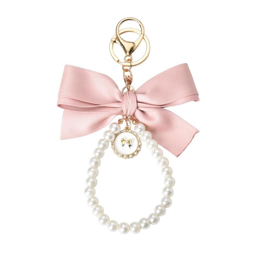 かわいいキーホルダー真珠リボンキーホルダー女性リボン真珠キーホルダーピンク黒ベージュ